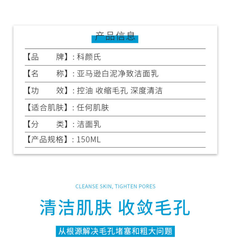 【预售 急音慎拍】科颜氏亚马逊白泥洗面奶150ml温和深层清洁毛孔