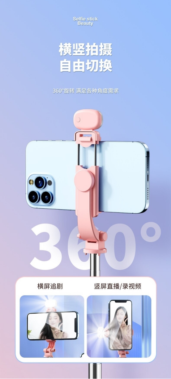 【自拍 补光 美颜 三合一】多功能蓝牙自拍杆