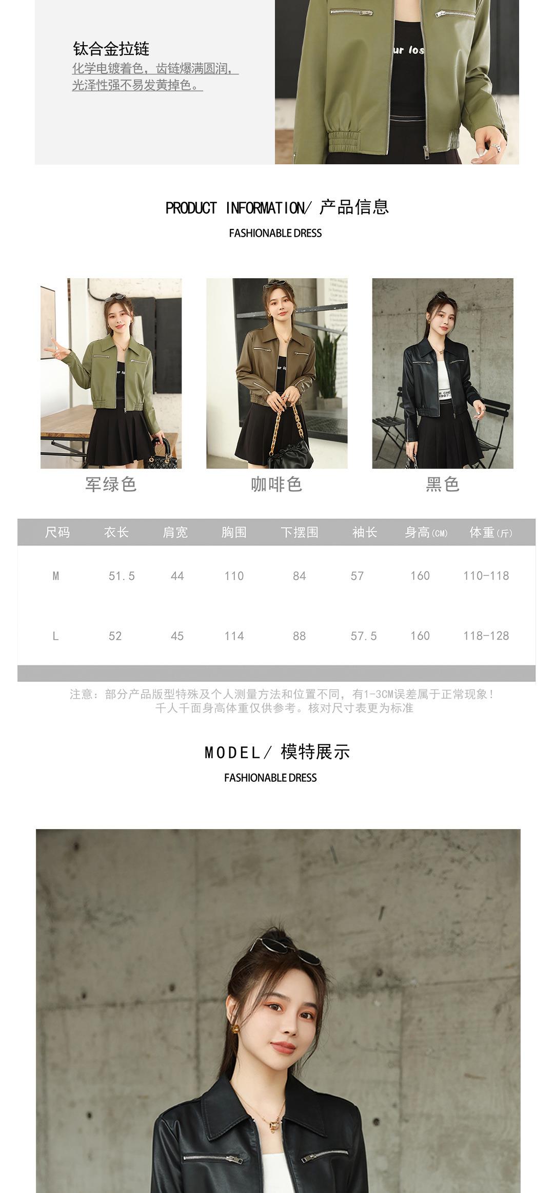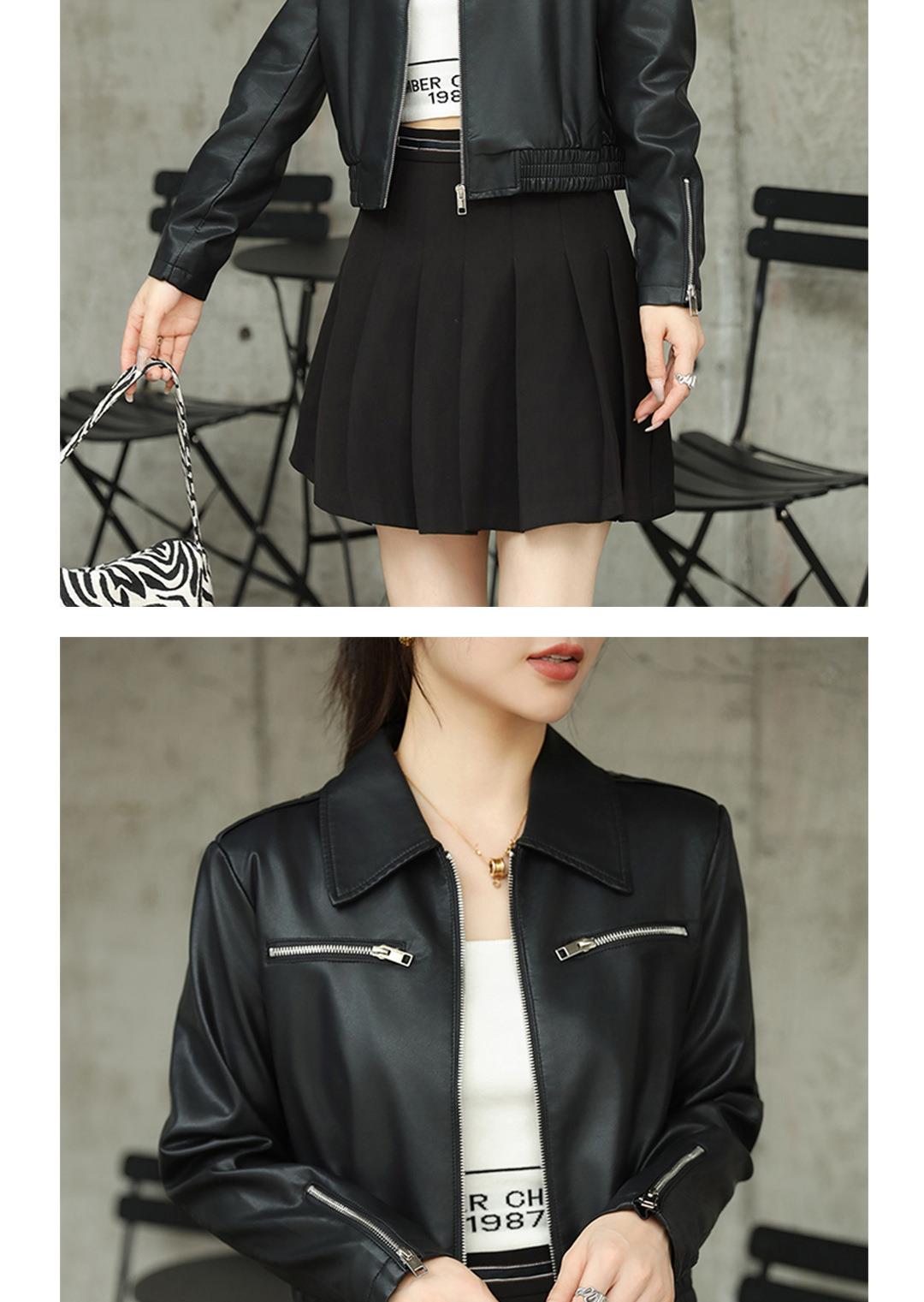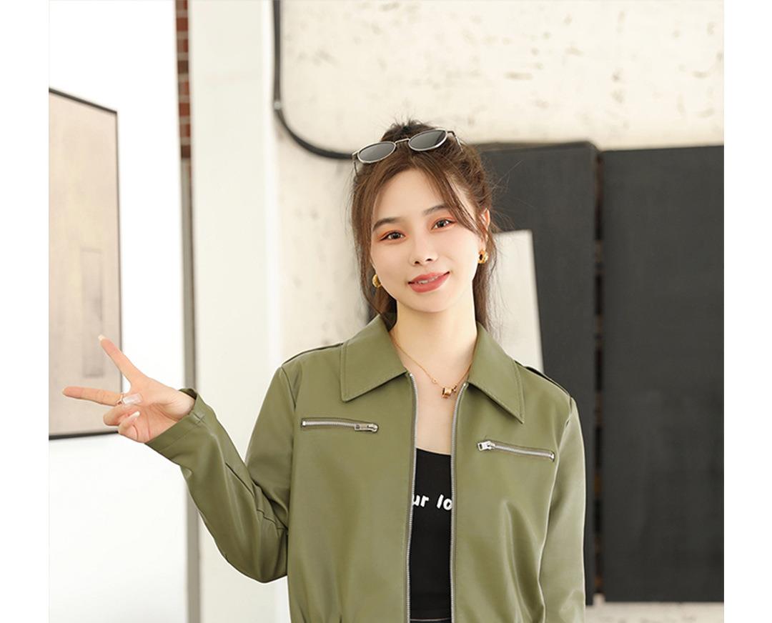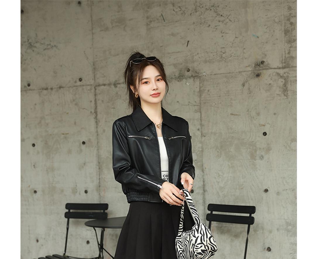 2023秋季新款短款皮衣外套女韩版翻领水洗蛋白皮修身皮夹克