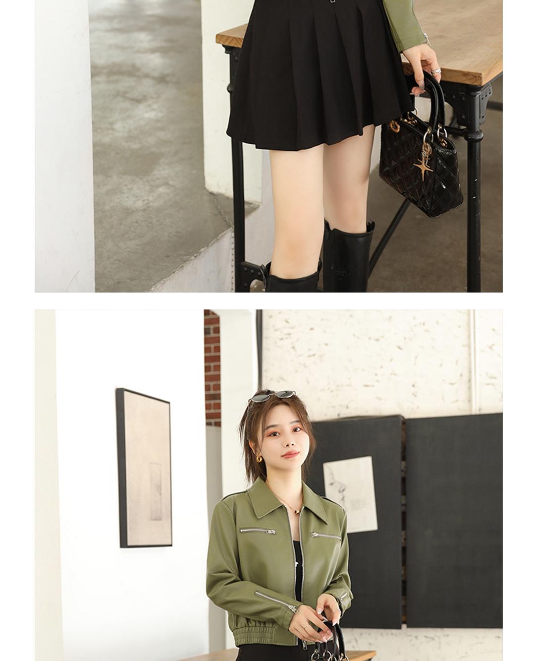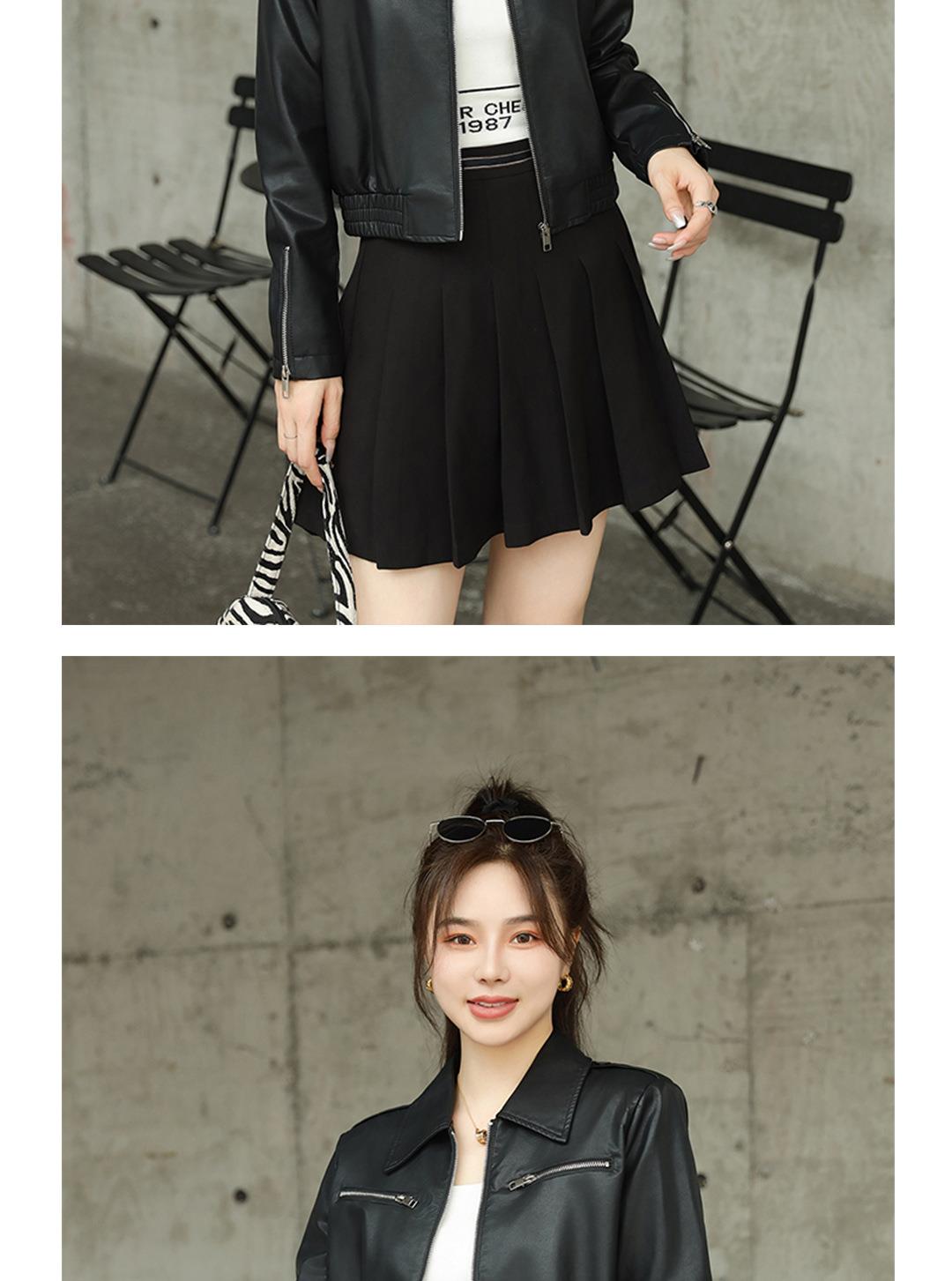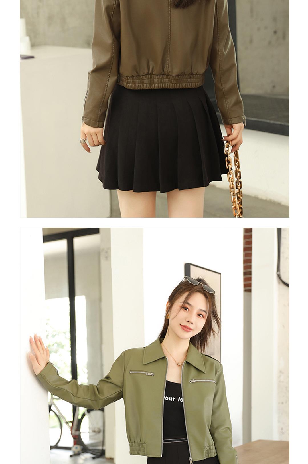 2023秋季新款短款皮衣外套女韩版翻领水洗蛋白皮修身皮夹克