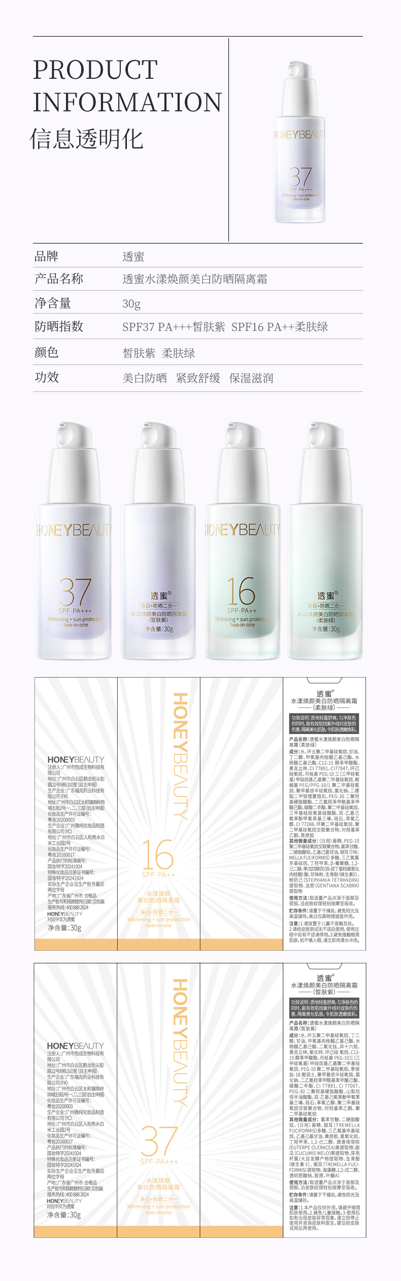 【新品上新丨第2件20元】透蜜 水漾焕颜美白防晒隔离霜30g 美白+防晒+隔离3效合一美白防晒双特证逆龄+抗皱+紧致(买就送美妆蛋)
