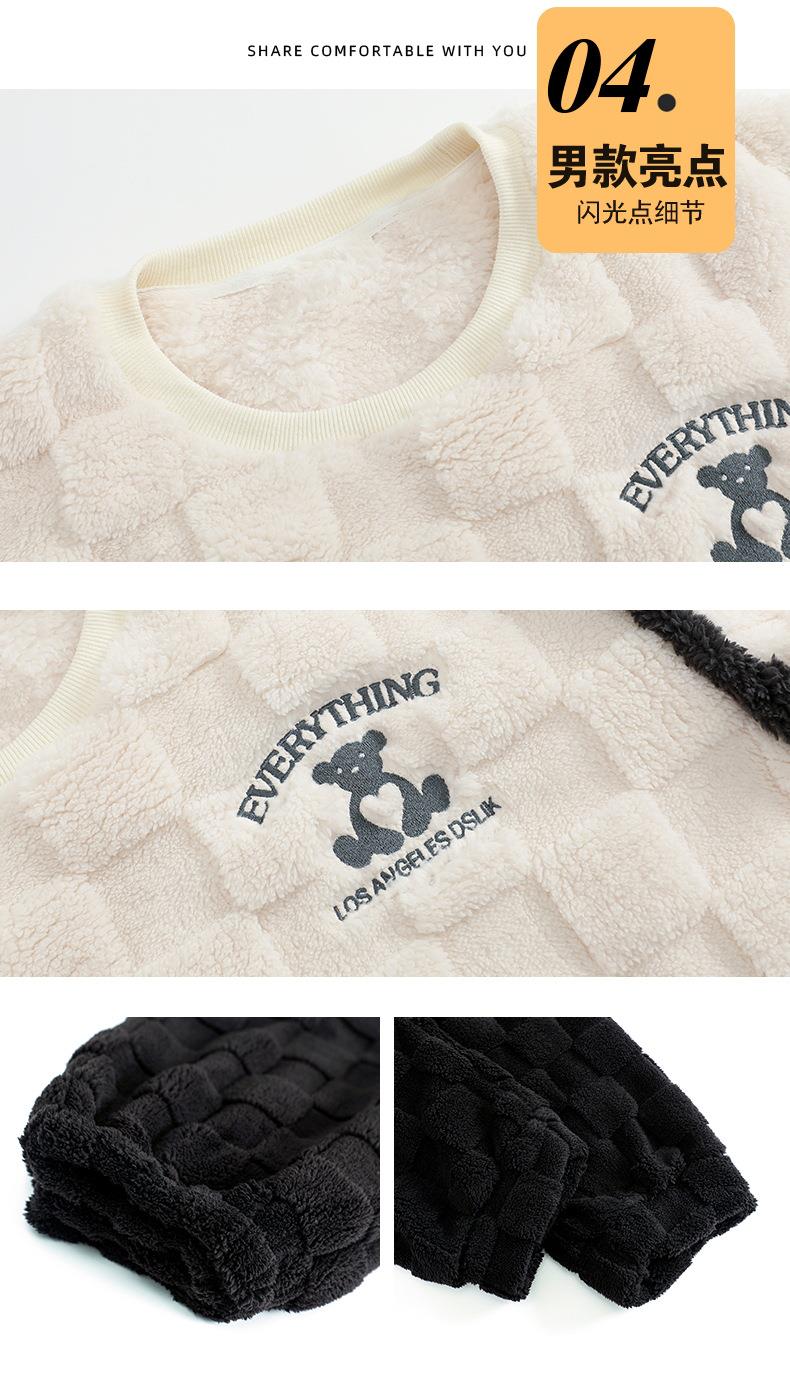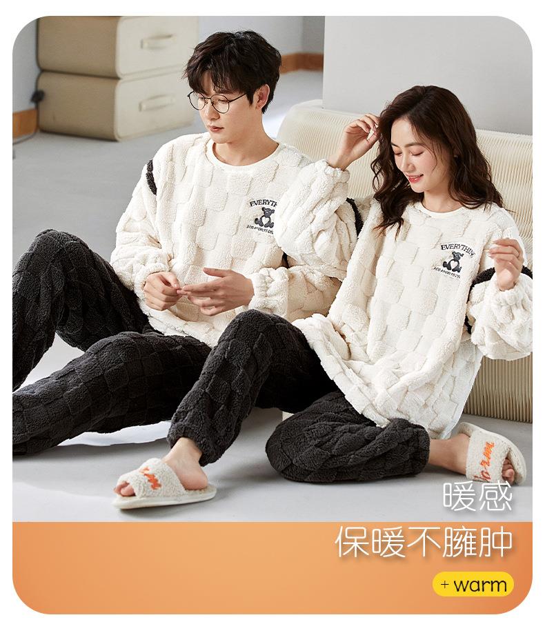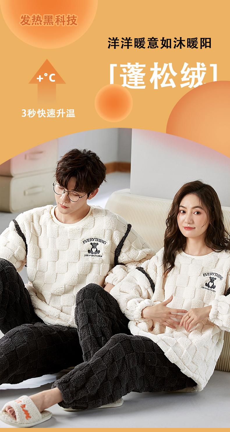 情侣睡衣女秋冬季法兰绒可爱卡通圆领套头卡通猪男士家居服珊瑚绒