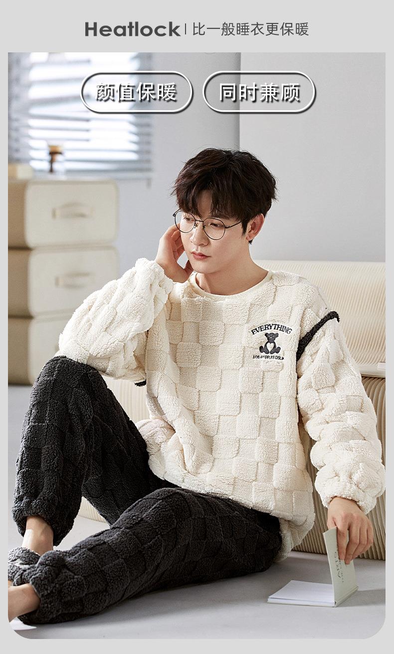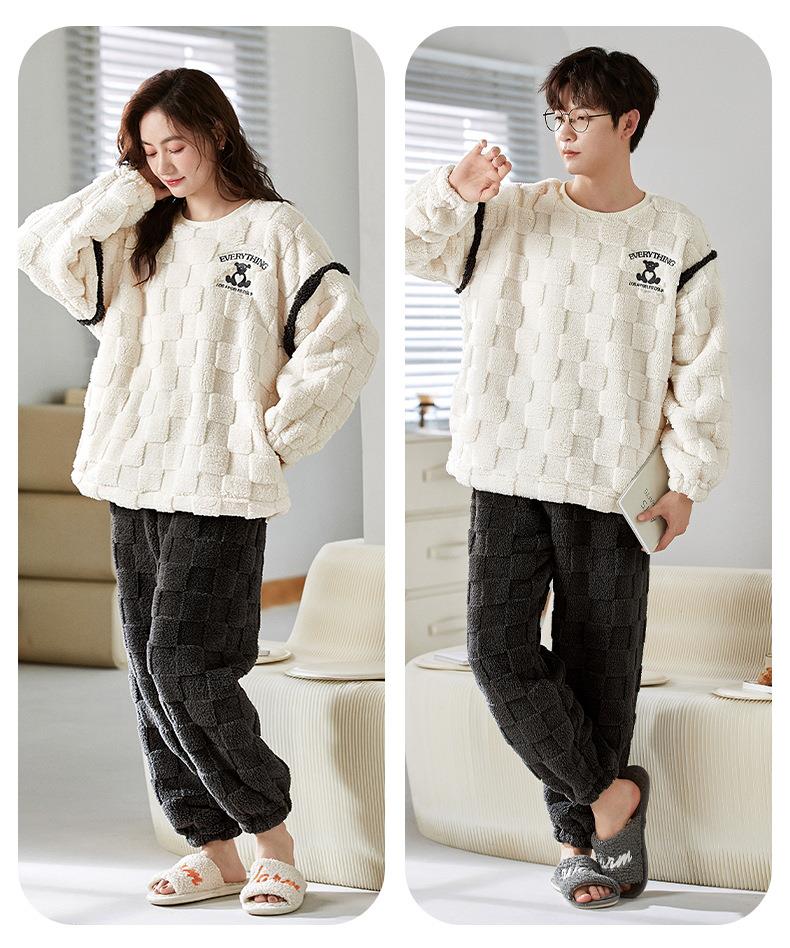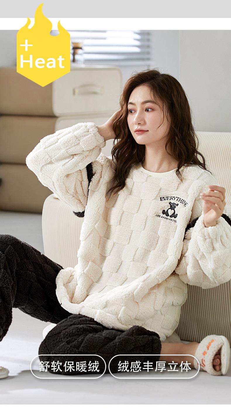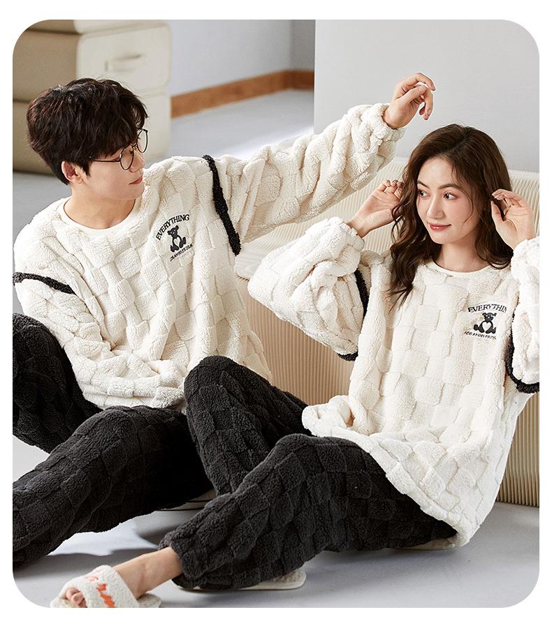 情侣睡衣女秋冬季法兰绒可爱卡通圆领套头卡通猪男士家居服珊瑚绒