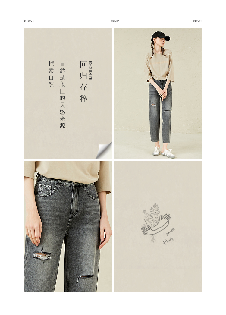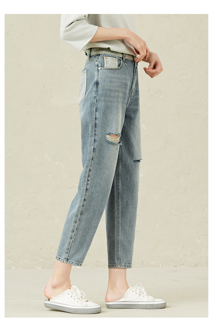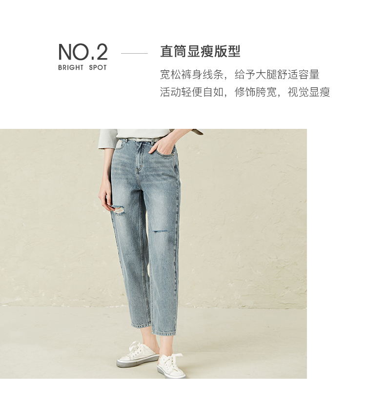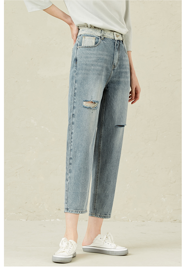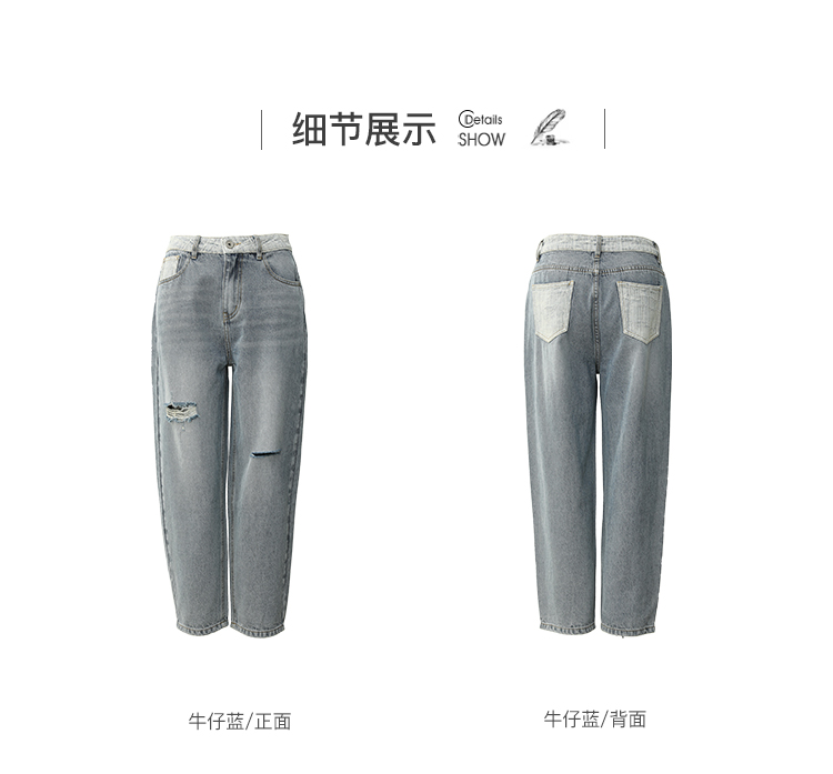 famecoco范可儿破洞牛仔裤女设计感小众直筒裤F221GA011
