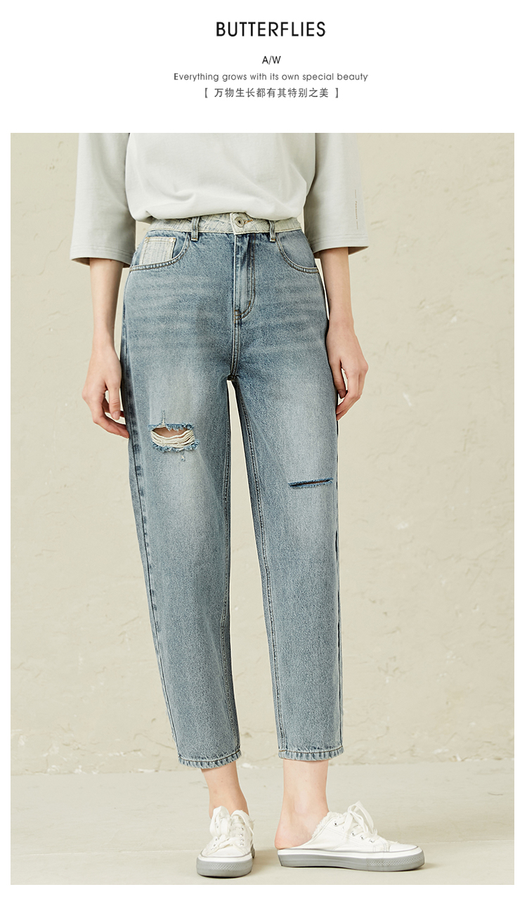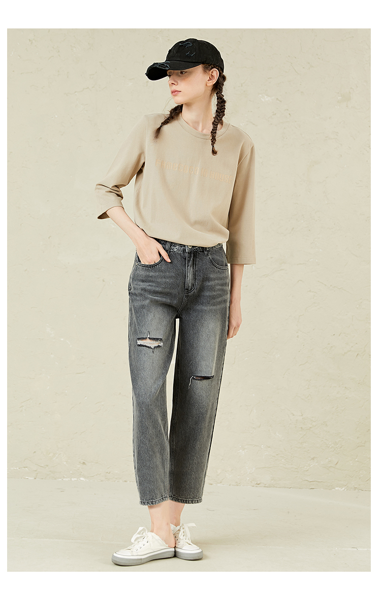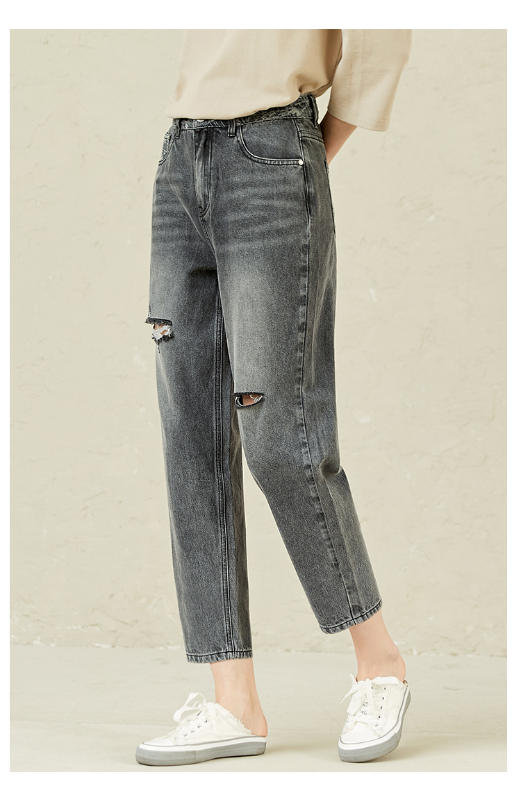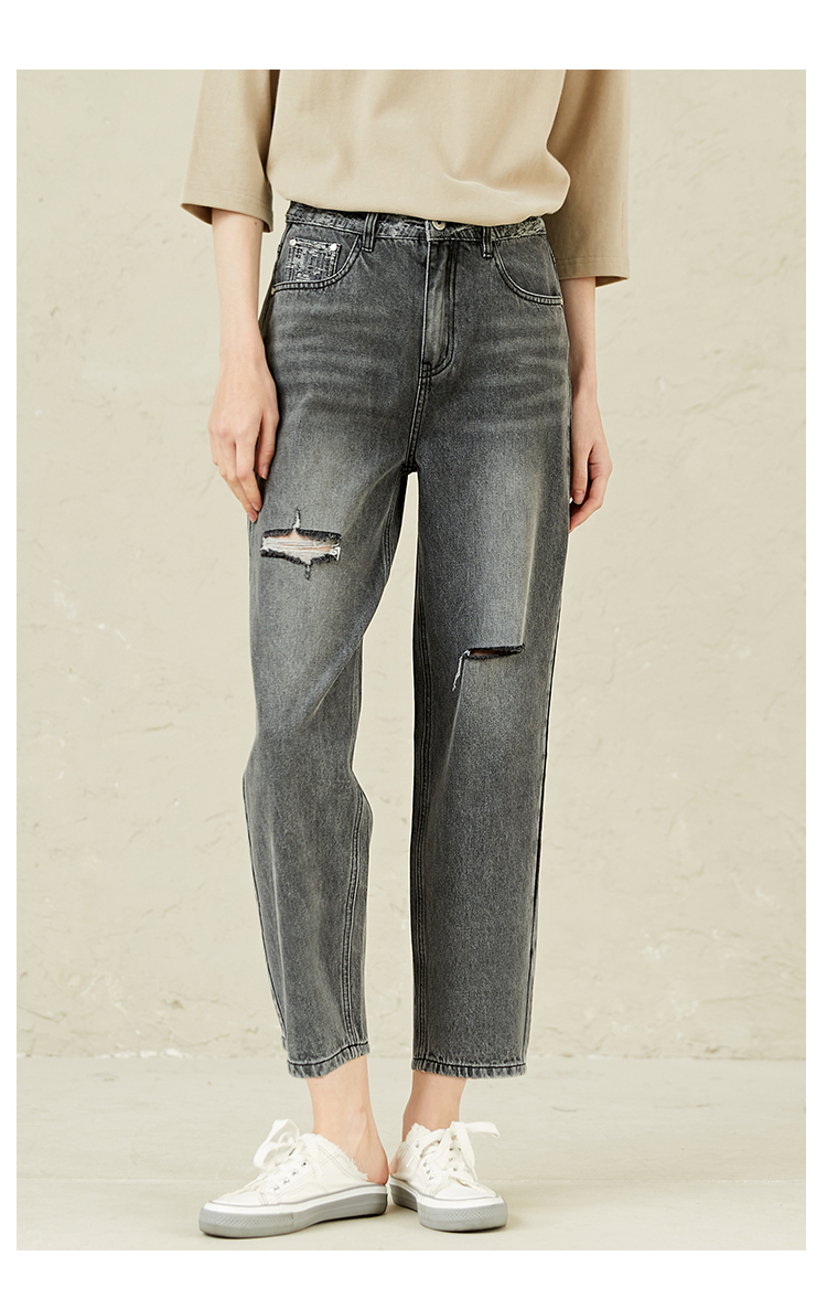 famecoco范可儿破洞牛仔裤女设计感小众直筒裤F221GA011