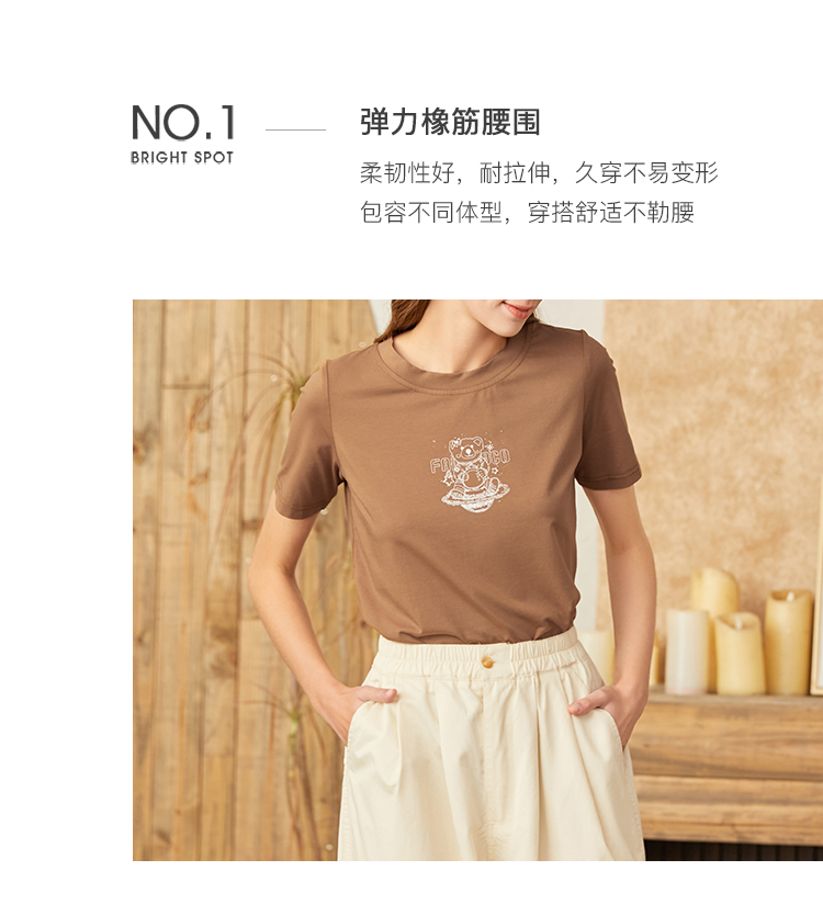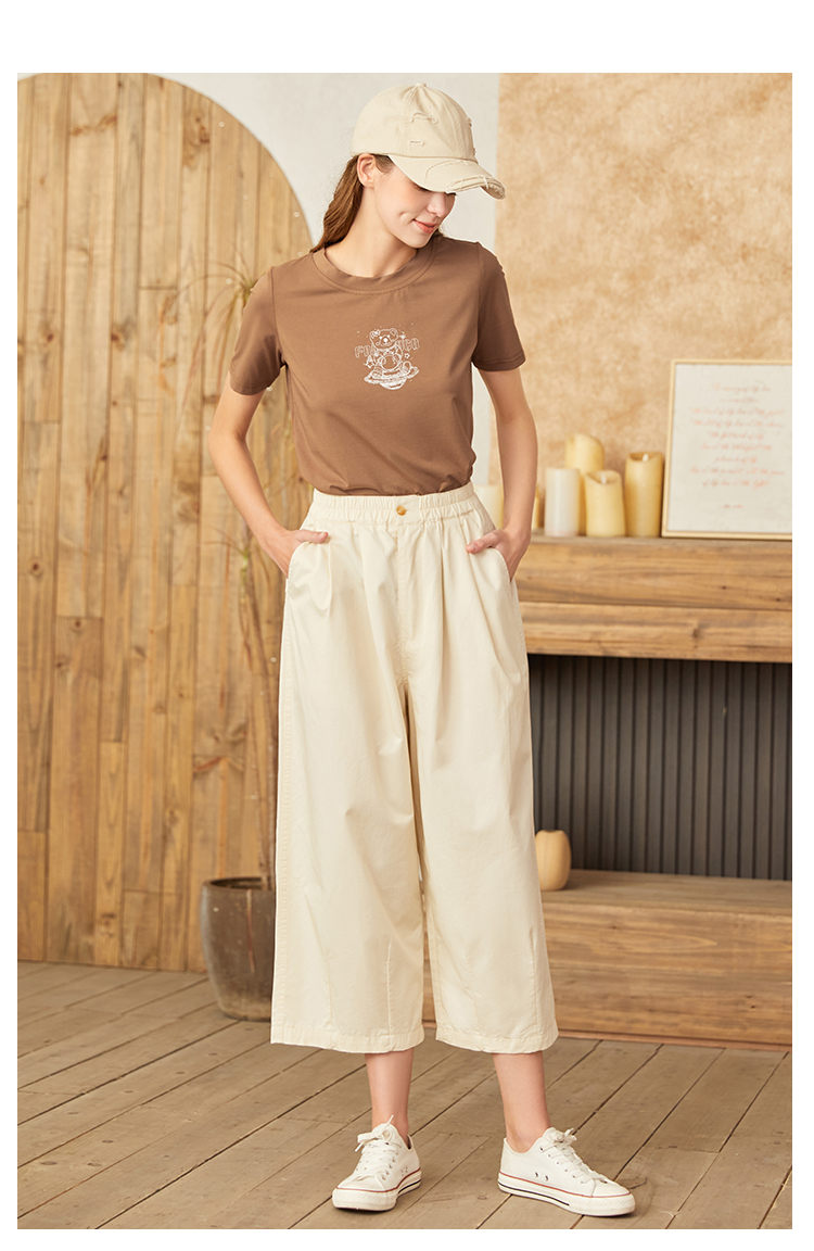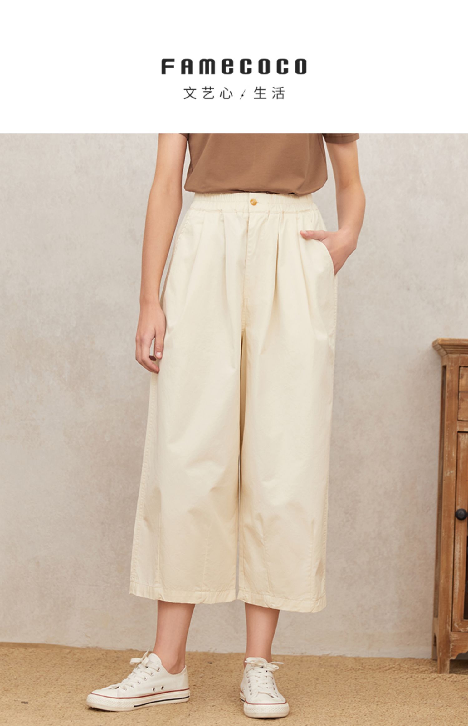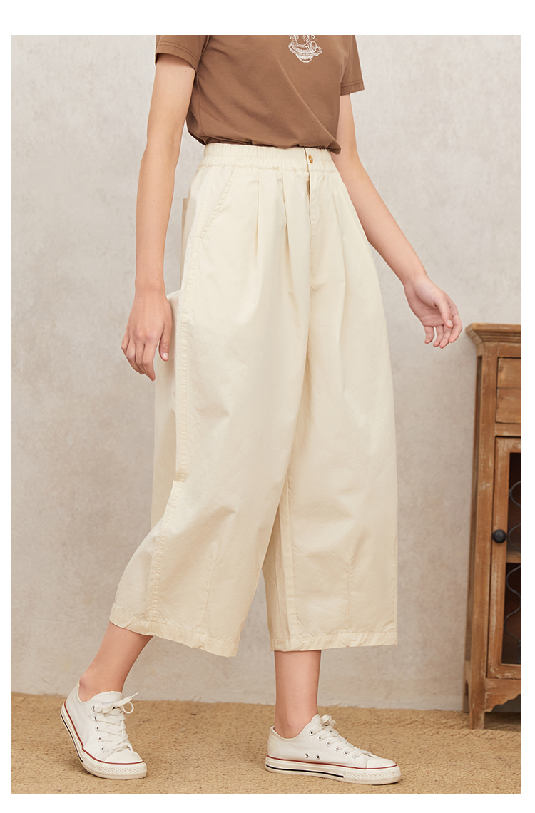 famecoco范可儿宽松休闲裤女春秋新款薄款纯棉弹力阔腿裤学生F223GA105