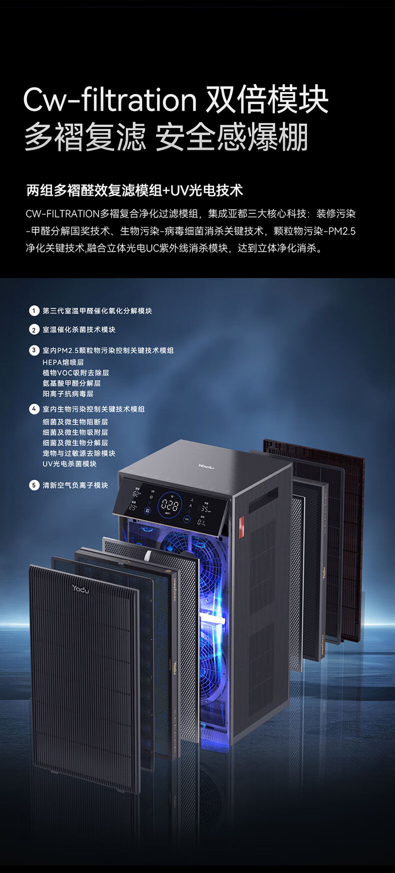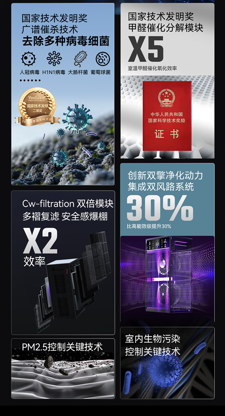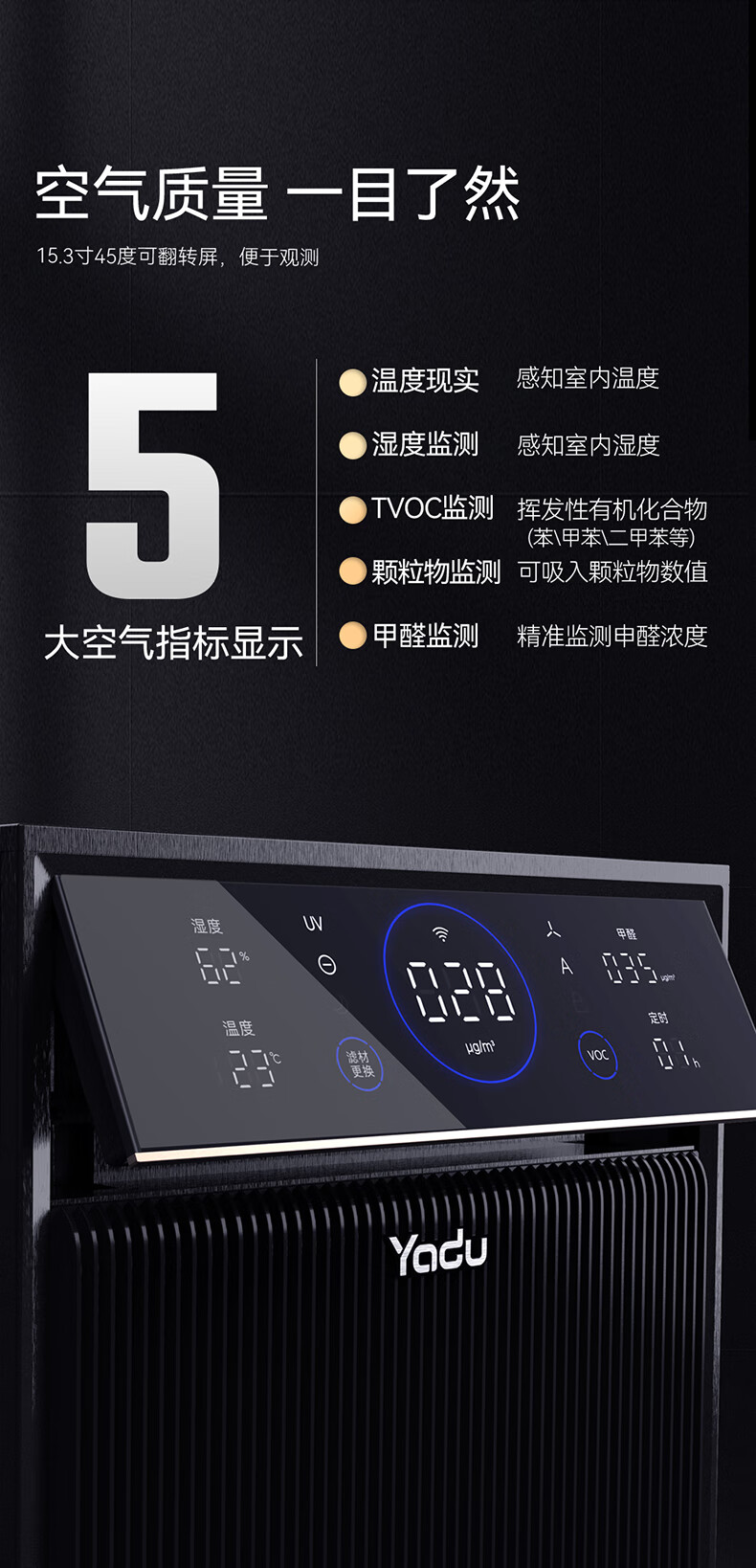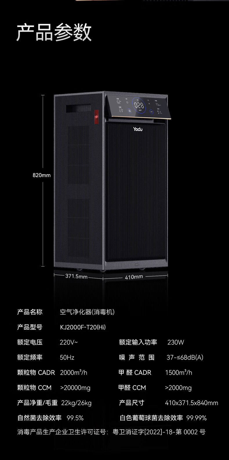 亚都(YADU) 空气净化器 卫健委备案消毒机 UFCO分解甲醛除异味 家用办公大空间 KJ2000F-T20(Hi)
