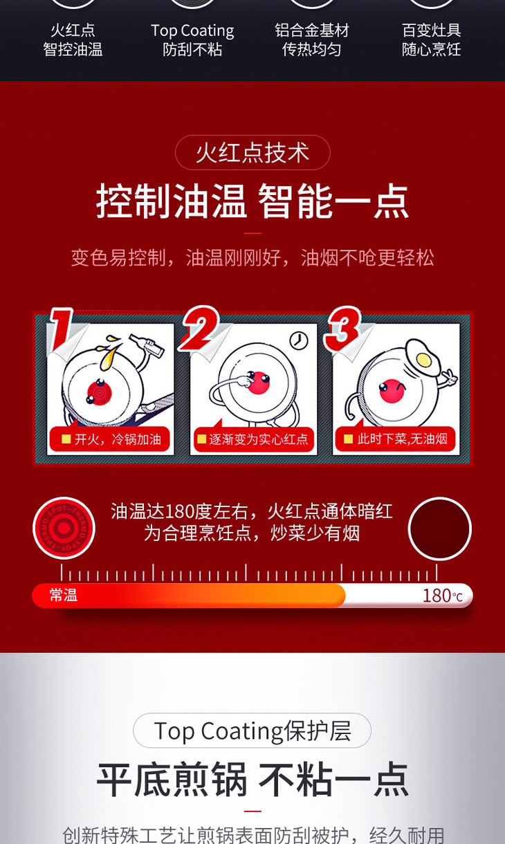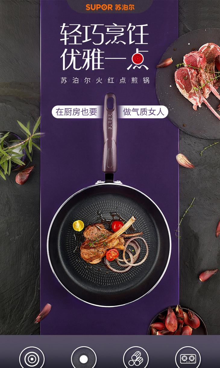 苏泊尔(553524)(SUPOR)PJ26K4火红点煎锅不粘锅平底锅26cm明火电磁炉通用