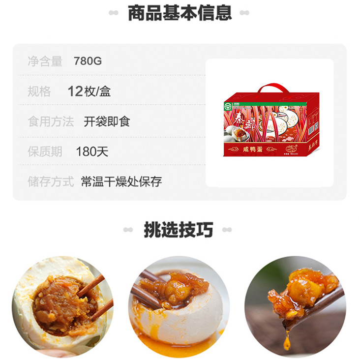 【秦邮】奎级12枚鸭蛋礼盒(包邮直发)【LY】