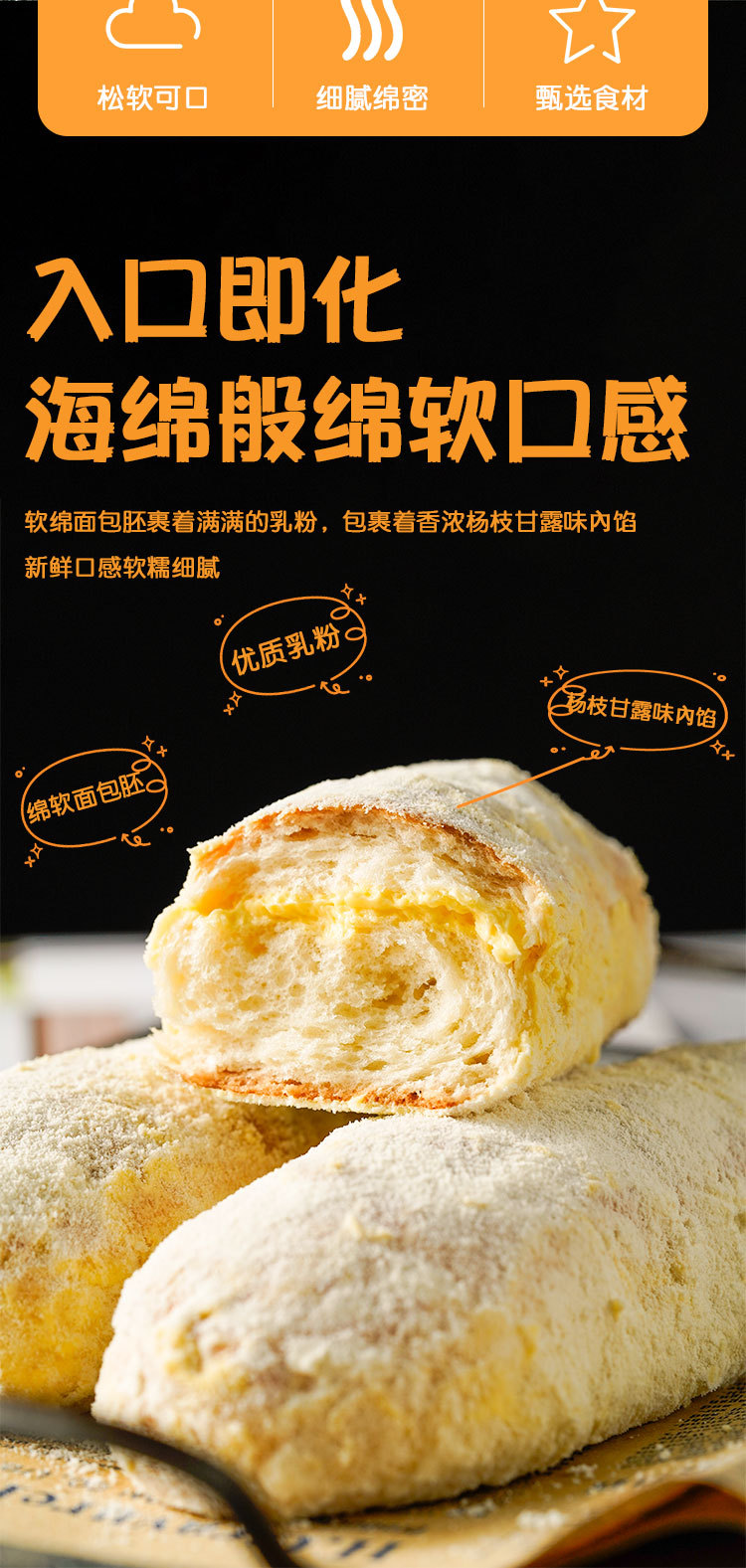 【入口即化!海绵般绵软口感】杨枝甘露味老奶油面包,软糯香甜,童年的味道,蓬松绵软 奶香浓郁,带馅夹心软欧包早餐代餐零食品