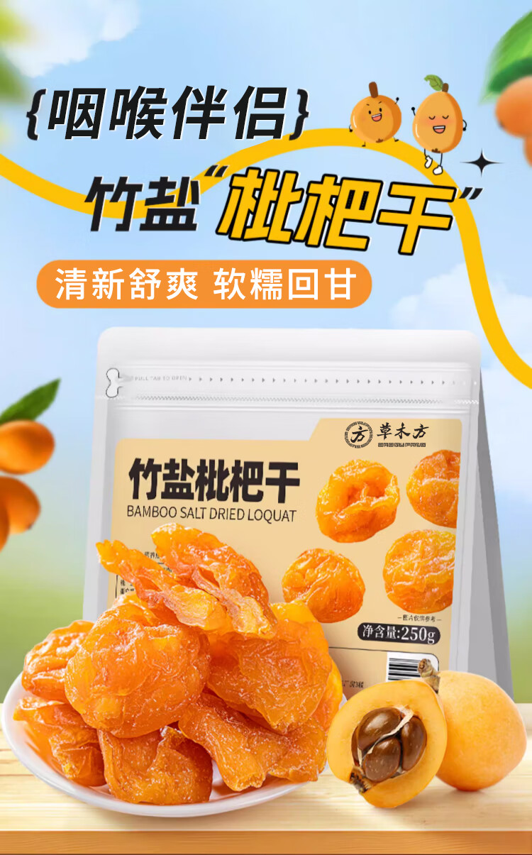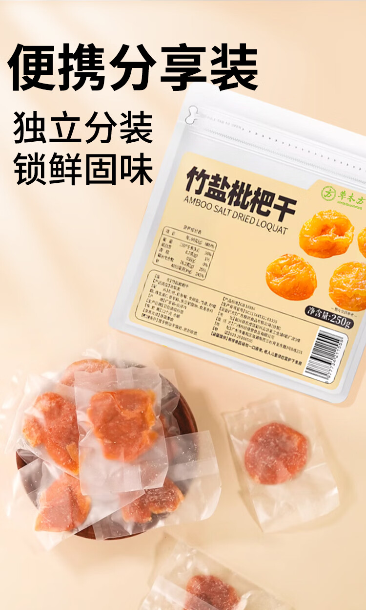 草木方 甘草竹盐枇杷干250g 独立小袋【整个鲜果】蜜饯解馋休闲零食