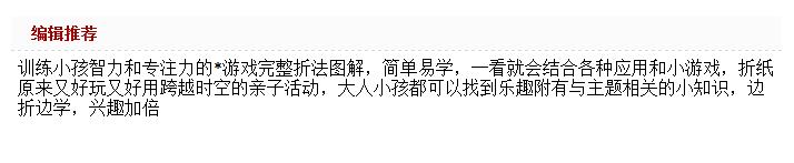 章 折纸的基本知识 基础技巧介绍 8 折纸的材料及工具 12 小朋友学折纸的好处 16 第二章 男孩篇——折出小玩意儿 纸飞机 20 折纸这样玩 亲子飞行大赛 26 折出小变化 飞机书签 27 会跳的青蛙 28 折纸这样玩 青蛙跳 31 折出小变化 惊喜盒子 32 纸炮仗 34 折纸这样玩 放纸炮仗 37 东南西北 38 折纸这样玩 东南西北,看看谁要…… 40 折出小变化 糖果篮 41 旋转纸陀螺 42 折出小变化 旋转陀螺 44 折出小变化 杯垫 44 折出小变化 空中旋转陀螺 45 飞镖 46 折纸这样玩 亲子比赛 48 折出小变化 贺卡装饰 49 小纸船 50 折纸这样玩 陆上赛船 54 折出小变化 立体相框装饰 55 第三章 女孩篇——折出装饰品 爱心 58 折出小变化 花花贺卡 62 幸运星 64 折出小变化 幸运瓶 66 纸花 68 百合花 68 康乃馨 72 樱花 74 折出小变化 花束 76 愿望纸鹤 78 折出小变化 风铃挂饰 81 衣服 84 折出小变化 卡片座和筷子架 86 裙子 88 折出小变化 立体卡 90 蝴蝶结 92 折出小变化 立体画 94 第四章 节日篇——折出好气氛 复活节:复活蛋篮子 98 折出小变化 收纳盒 103 母亲节:爱心手袋 104 折出小变化 花篮 106 父亲节:西装 108 折出小变化 父亲节贺卡 111 中秋节:灯笼 112 折出小变化 灯笼挂饰 114 圣诞节:圣诞老人 116 折出小变化 圣诞树挂饰 119 端午节:粽子 120 折出小变化 粽子挂饰 123 第五章 故事篇——折出亲子时光 青蛙王子的跳远大赛 126 折纸这样玩 青蛙跳远比赛 128 小鸡凡凡的成长故事 130 折纸这样玩 你的本故事书 133 小明的足球比赛 136 折纸这样玩 手指足球赛 140 外星人入侵地球 142 折纸这样玩 东南西北温功课 144 |