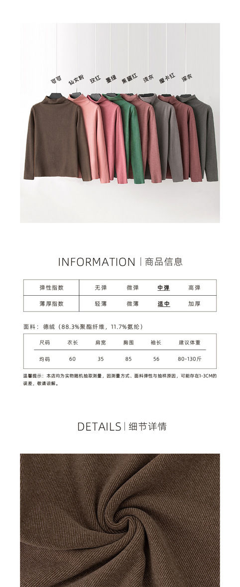 半高领保暖阳离子打底衫套头针织衫 2020秋冬 新款弹力德绒针织衫