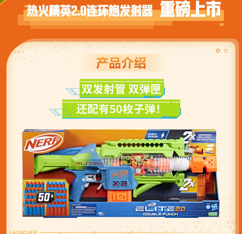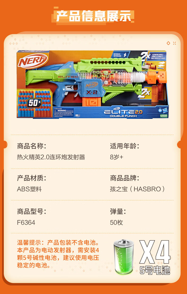 孩之宝Hasbro 热火精英2.0连环炮发射器 HASCF6364SA20
