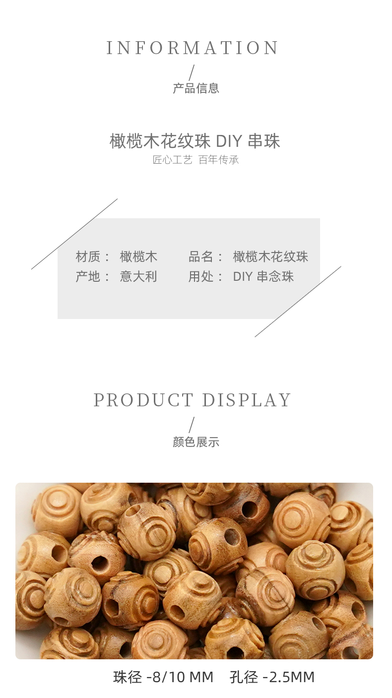 花纹橄榄木珠木料原木料意卡米诺手串念珠串珠单颗珠子料散珠老料意大利进口