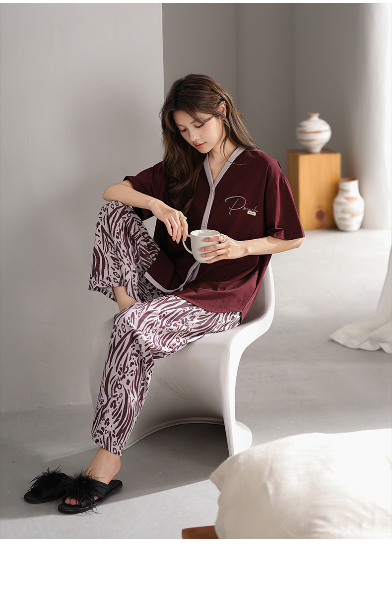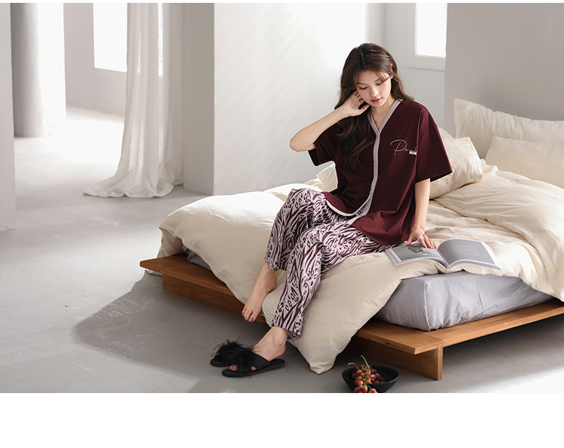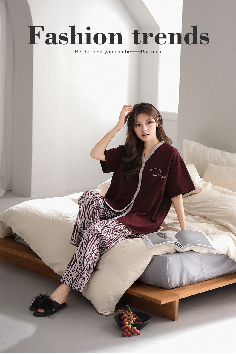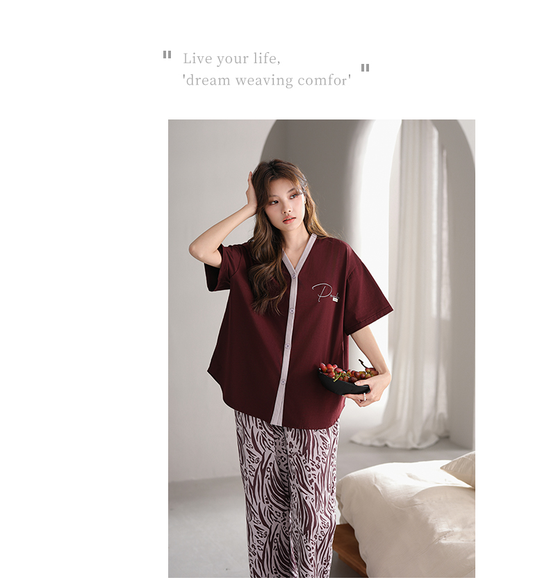 可人儿小众设计师新款奥力绵女士睡衣春夏短袖可外出家居服套装