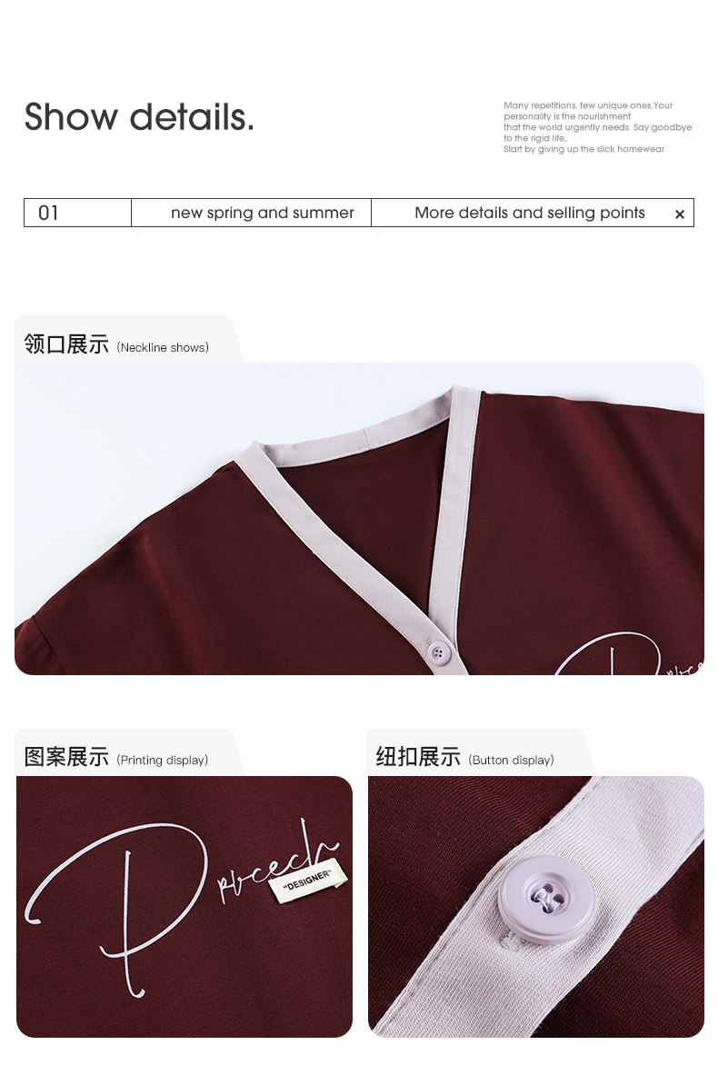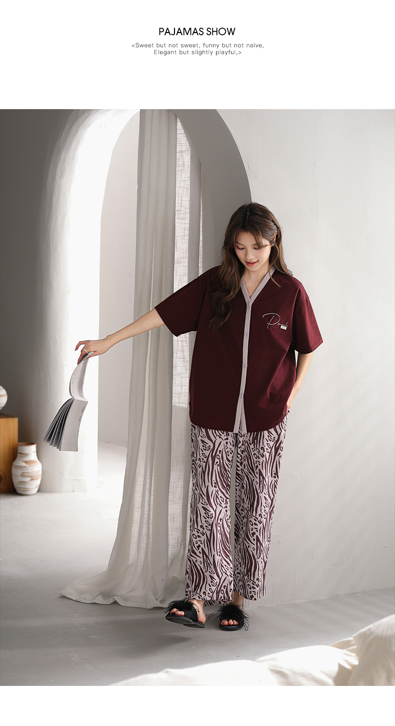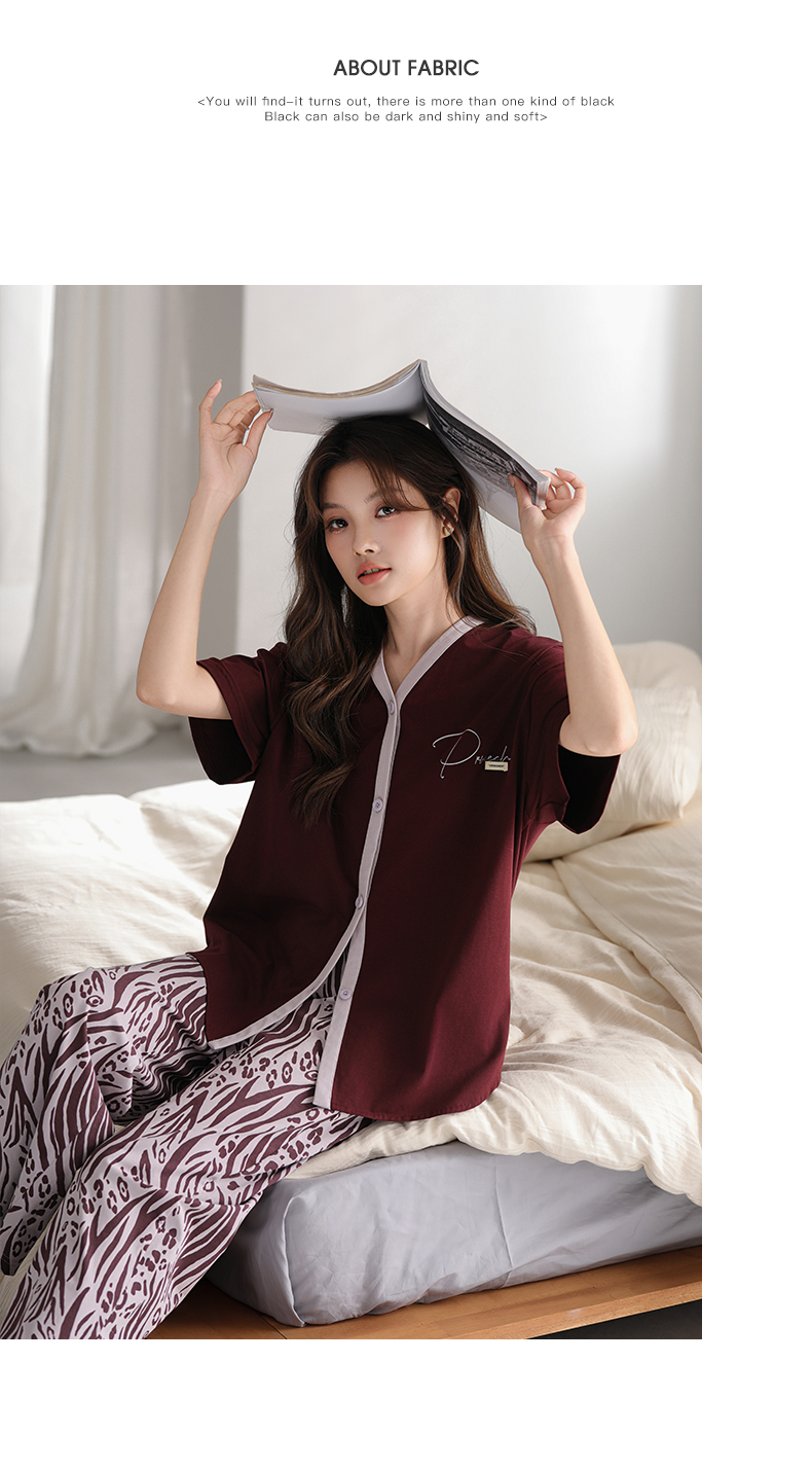 可人儿小众设计师新款奥力绵女士睡衣春夏短袖可外出家居服套装