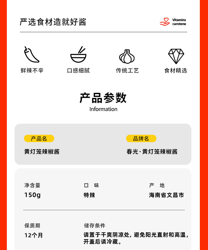 黄灯笼辣椒酱 150g(特辣型)瓶装 厨房调味