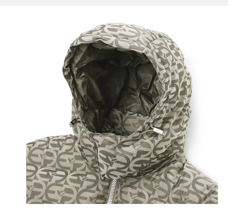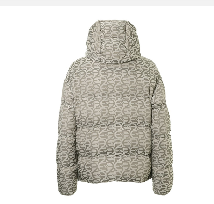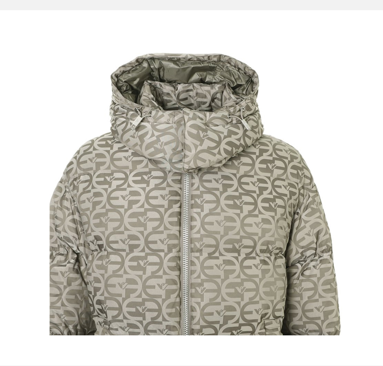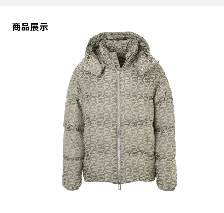 EMPORIO ARMANI 阿玛尼 男士徽标印花连帽拉链羽绒服 米色 6L1BH2 1NLLZ 0177