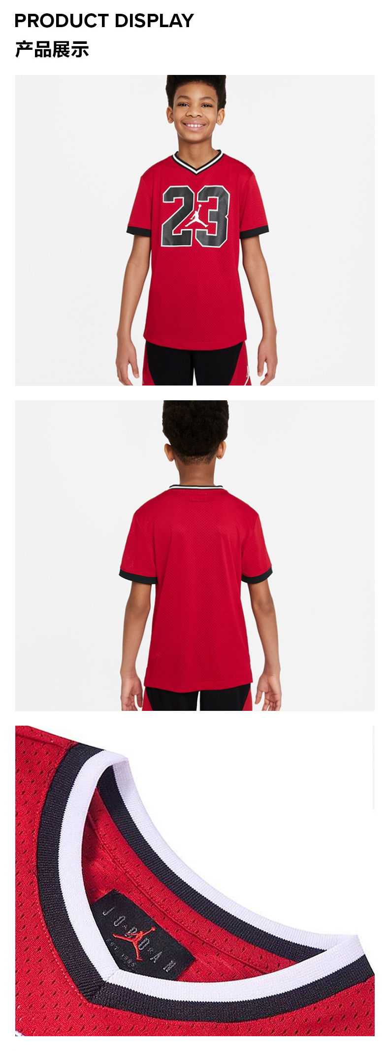乔丹童衣童装夏男女儿童篮球服透气速干运动T恤JDPS/GS