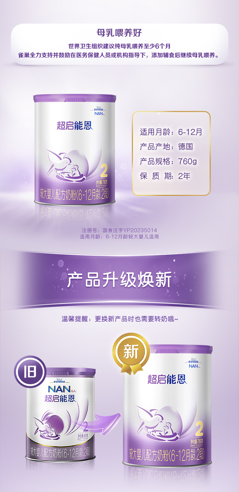 雀巢超启能恩较大婴儿配方奶粉2段760g