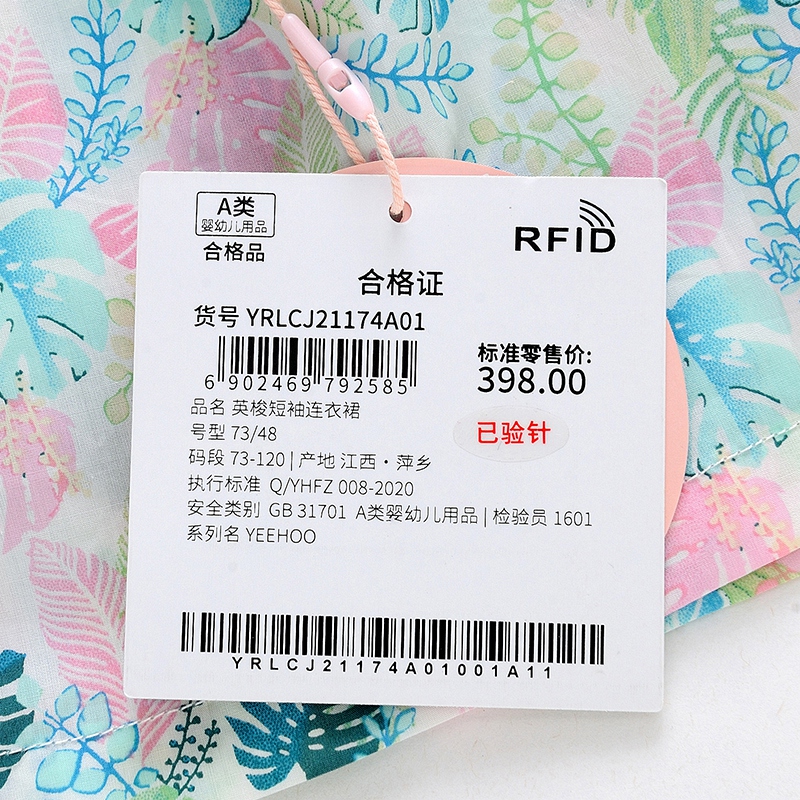 英氏-童衣类(夏)E1外着英梭短袖连衣裙白100CM