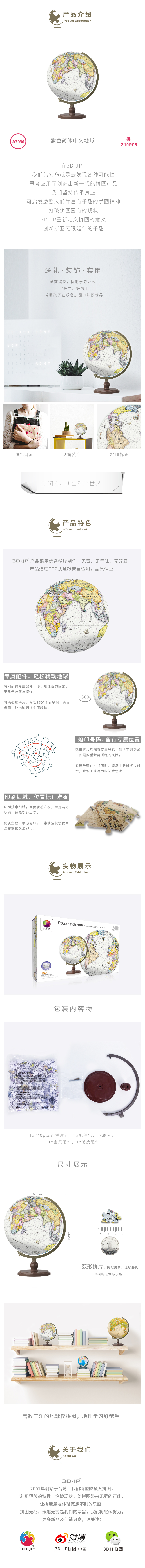 【折扣商品 不退不换】6寸240片 地球仪拼图 塑料拼图 A3036 紫色简体中文