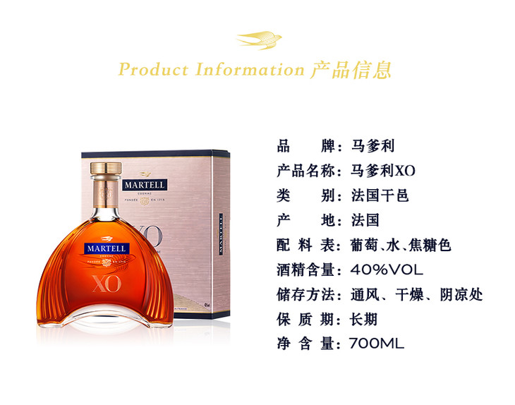 【有税版】马爹利XO干邑白兰地 700ml原装进口