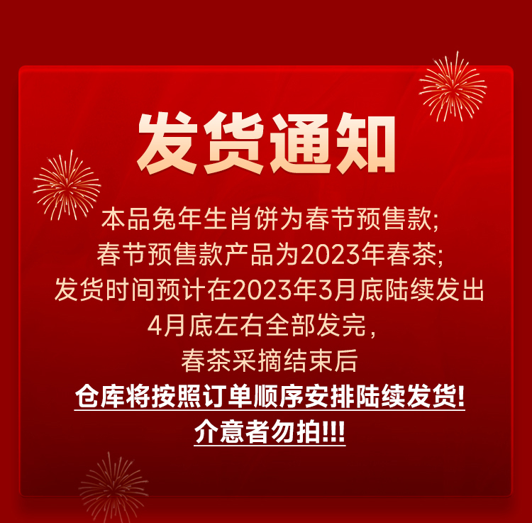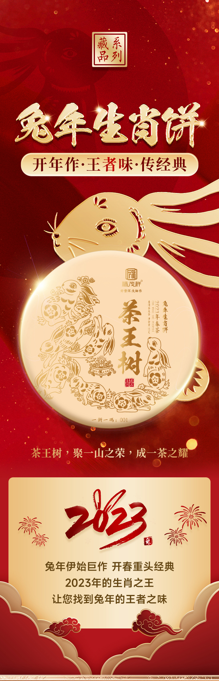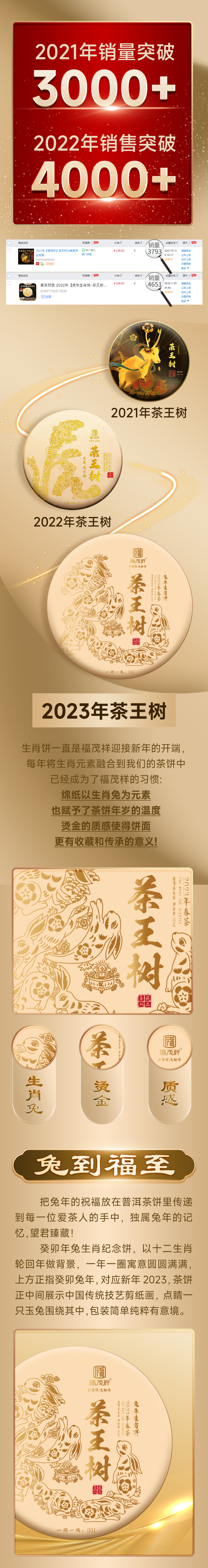 【兔年生肖饼-茶王树】2023年头春茶易武202号茶王树古800普洱生茶357g饼茶