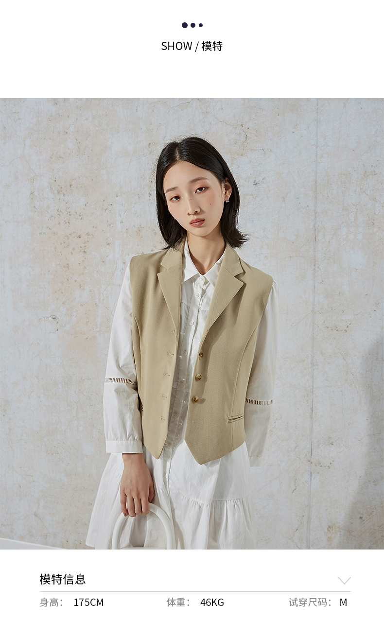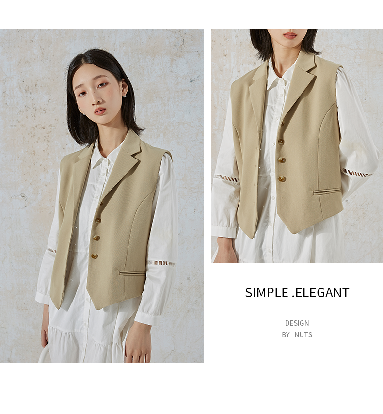 NUTS商场同款春秋款纯色时尚气质百搭马夹女231032114B