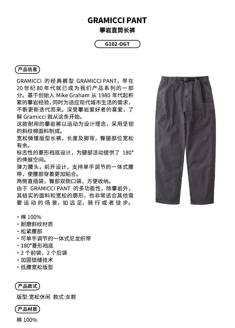 GRAMICCI小野人 经典款山系户外休闲长裤男士宽松直筒裤G102-OGT