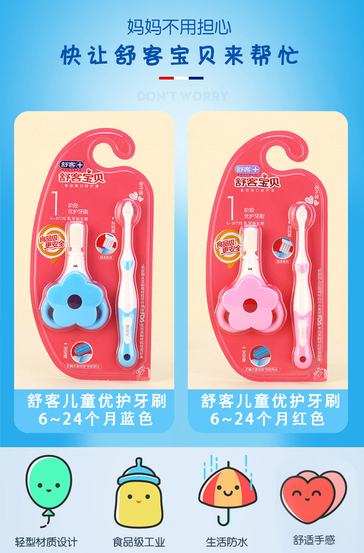 舒客宝贝儿童6-24个月-6岁以下乳牙期乳齿宝宝妈妈握牙刷万根毛云柔牙刷