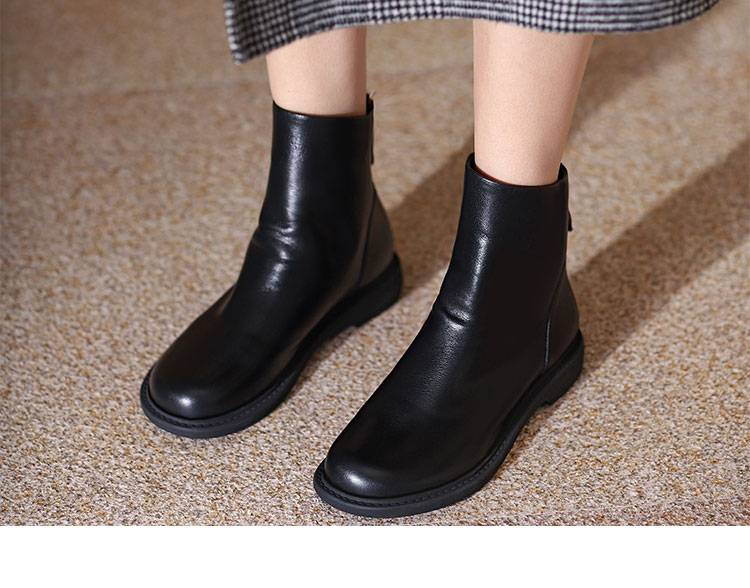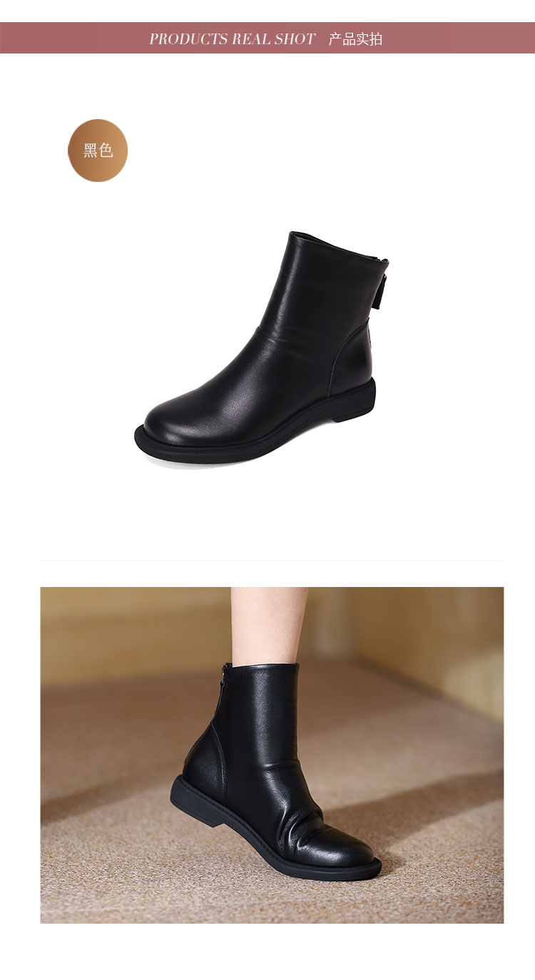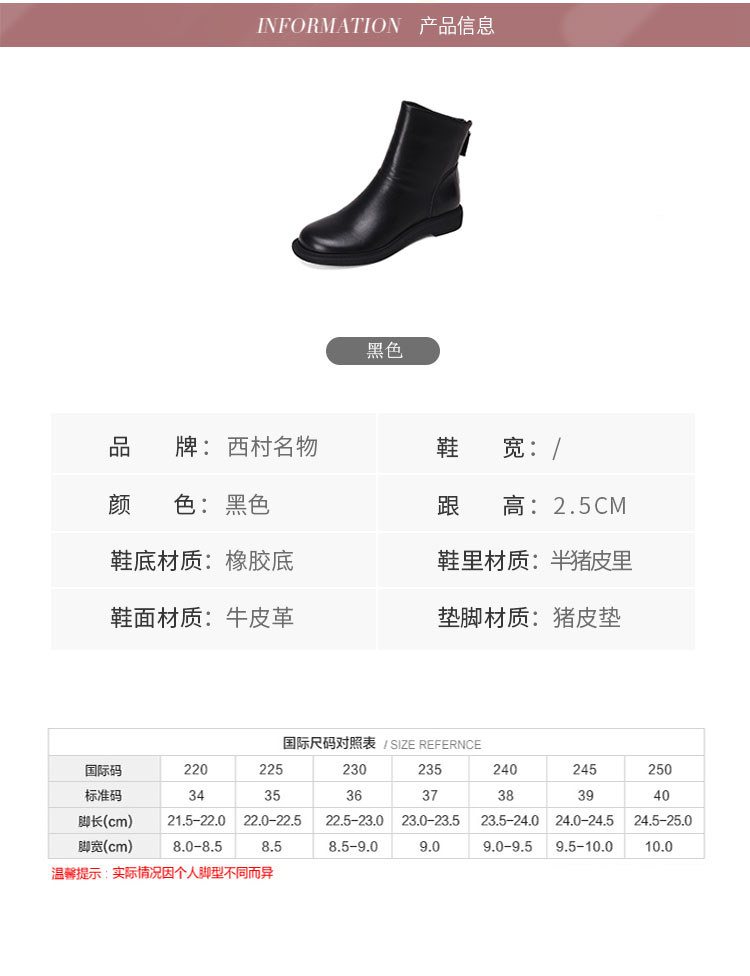 西村名物2021年秋冬新款经典百搭女短靴切尔西女靴时装靴圆头裸靴T21DS44261