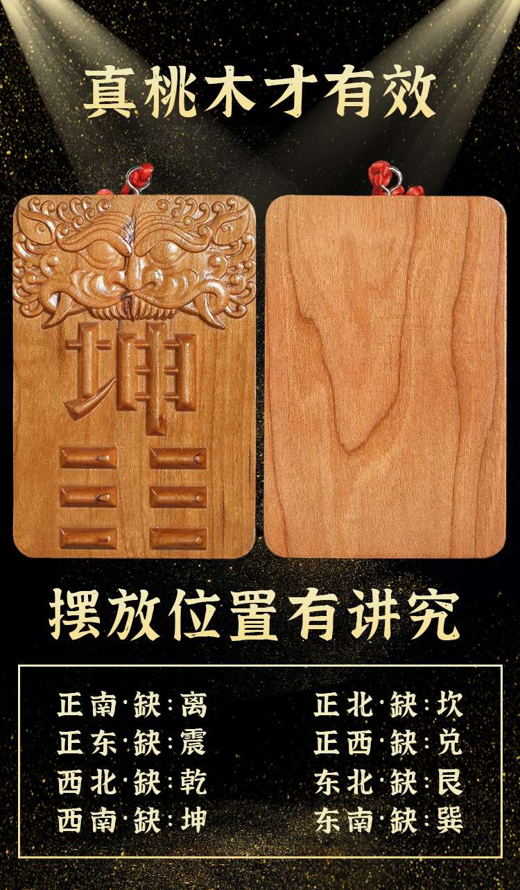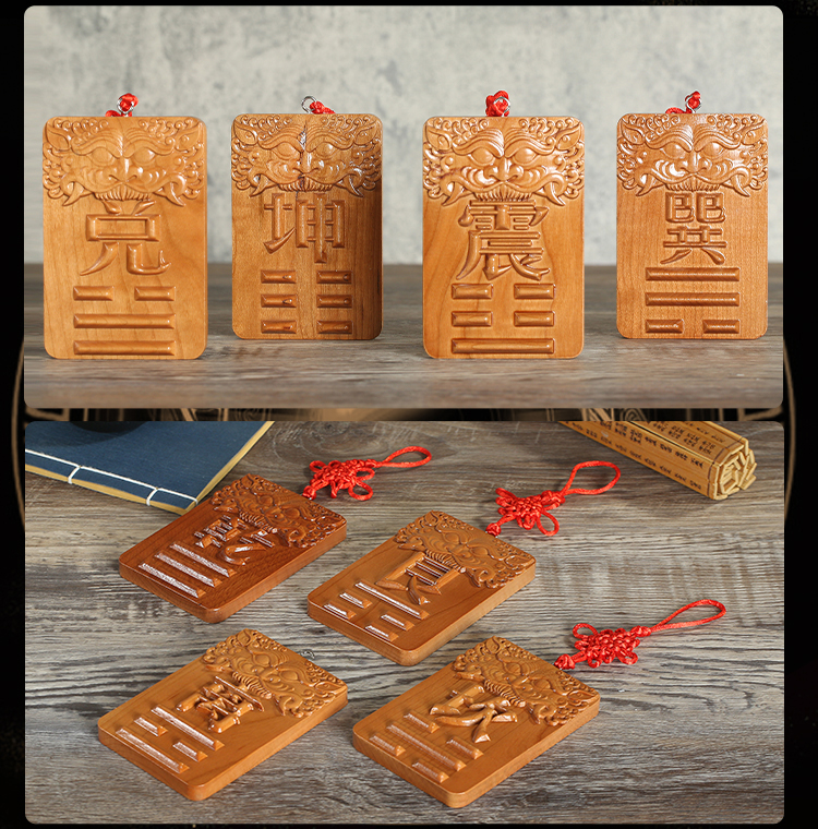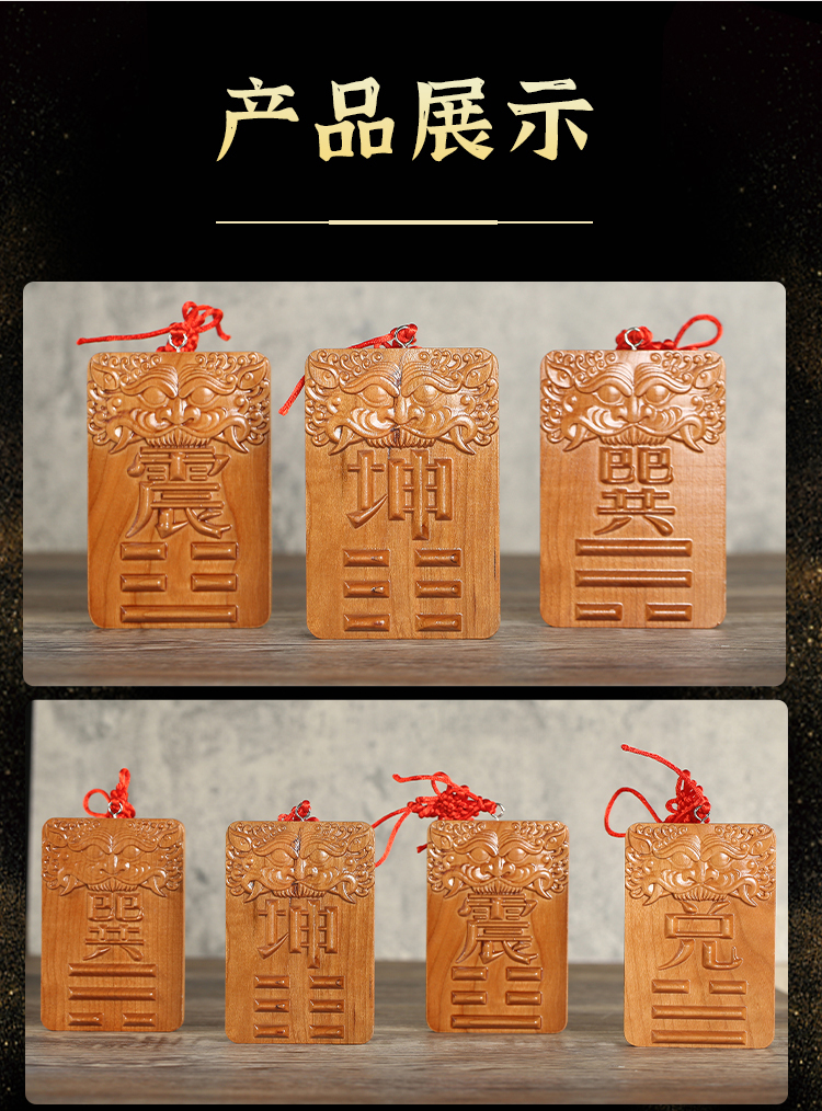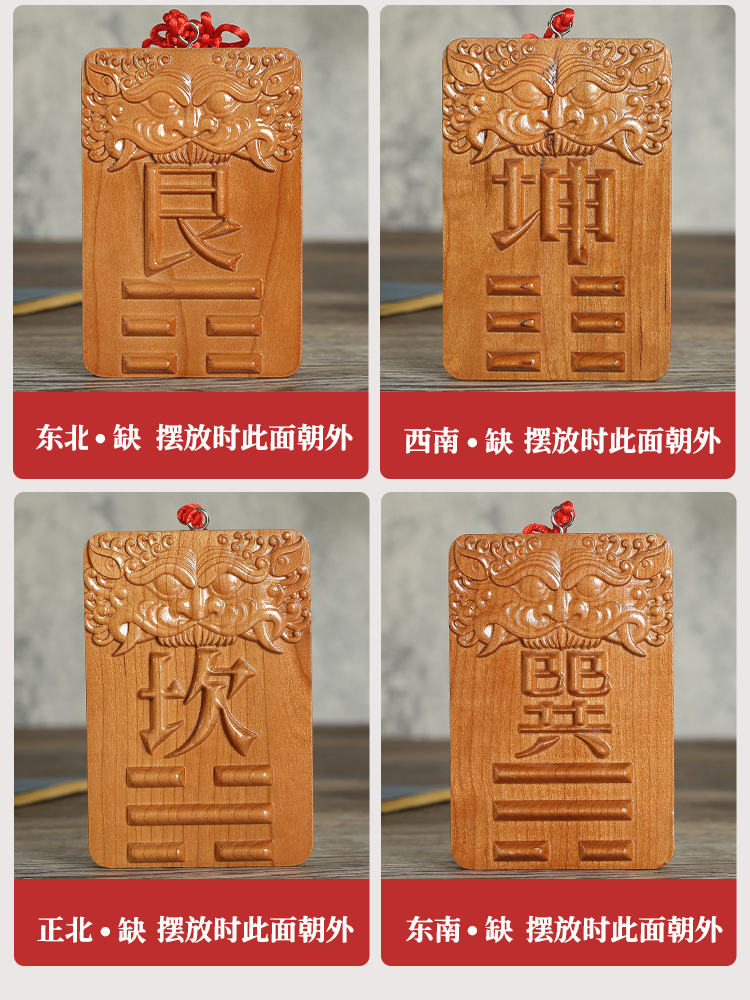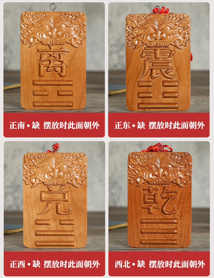 正宗桃木八gua补角兽头牌挂件房屋装饰木雕家居摆件