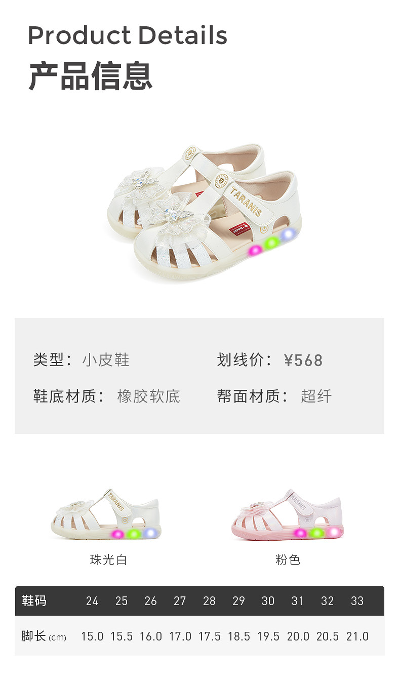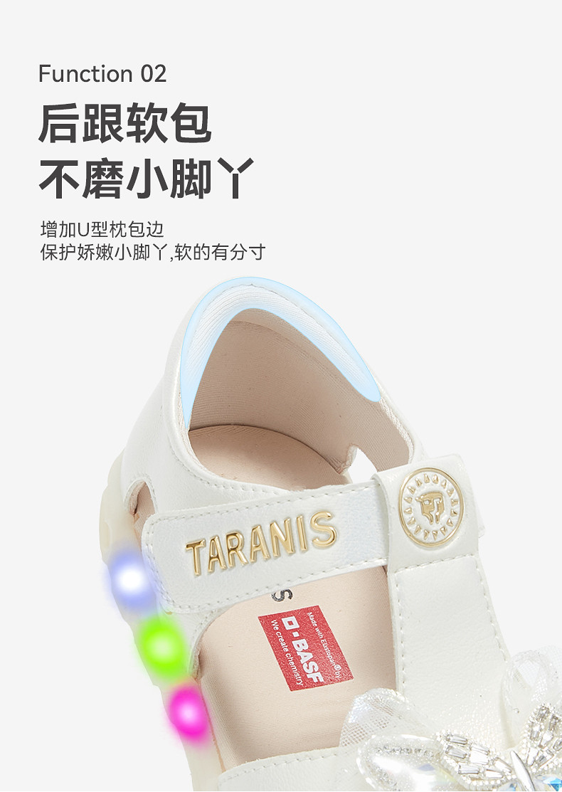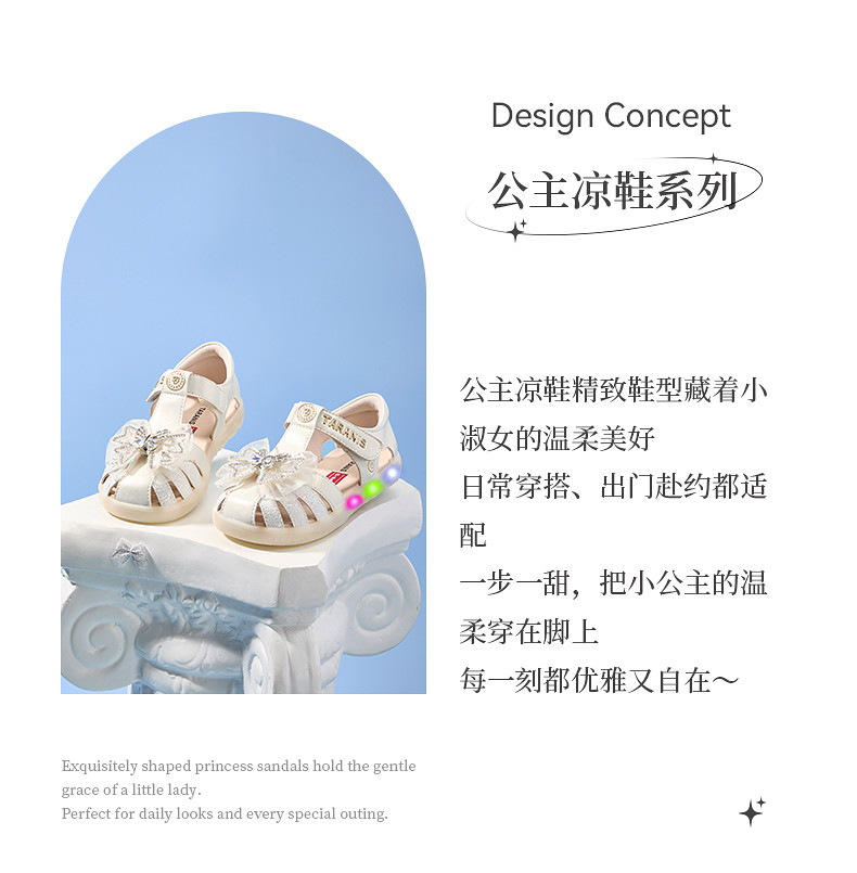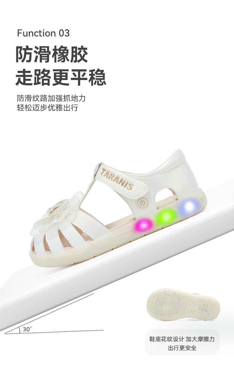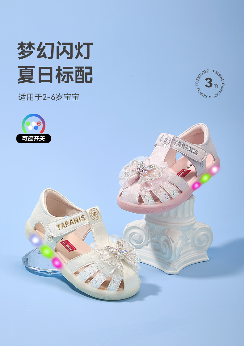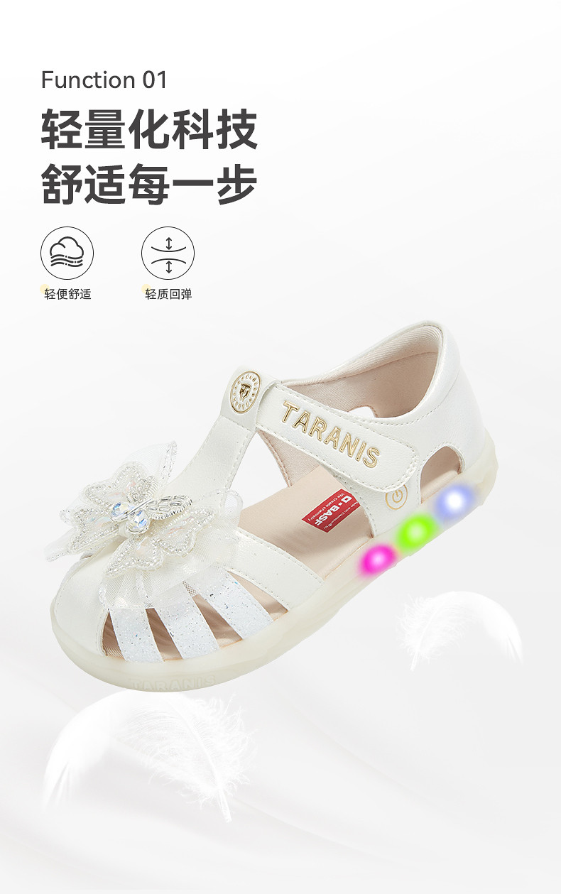 泰兰尼斯meta儿童凉鞋2026夏款女童软底闪灯包头女孩洋气公主单鞋M07X6B8766