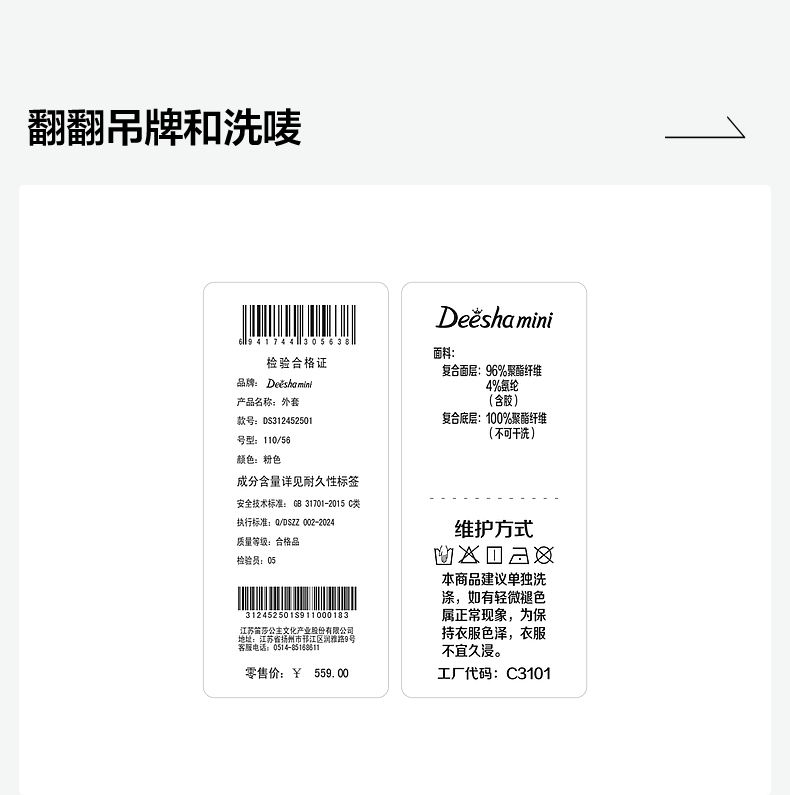 笛莎Deesha 童装女童外套2024冬季新款小童外套
