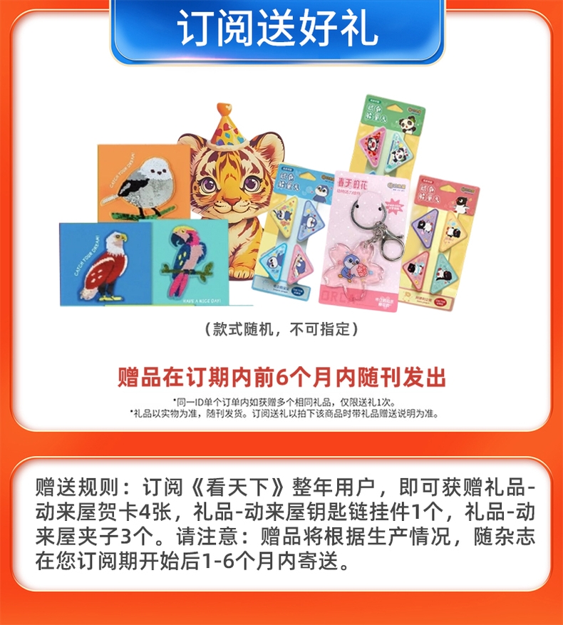 发货提醒:每月15号之前订阅从下月起订,16号之后订阅从下下月起订。此产品为月投,每月3期到齐一起发货(春节休刊1期),从起订月份起每月月底发货,介意者慎拍。