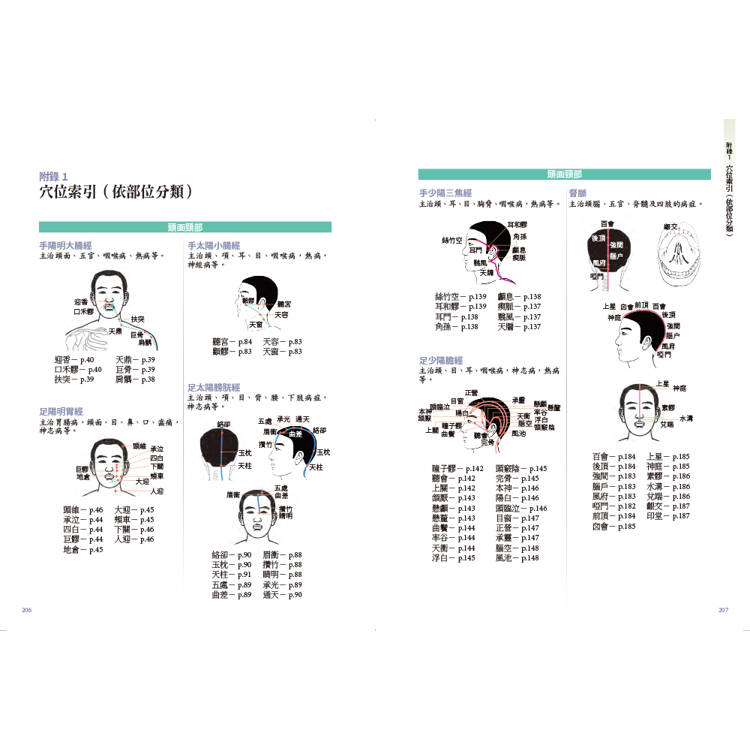 每個穴位皆附上骨骼定位圖和真人示範圖,