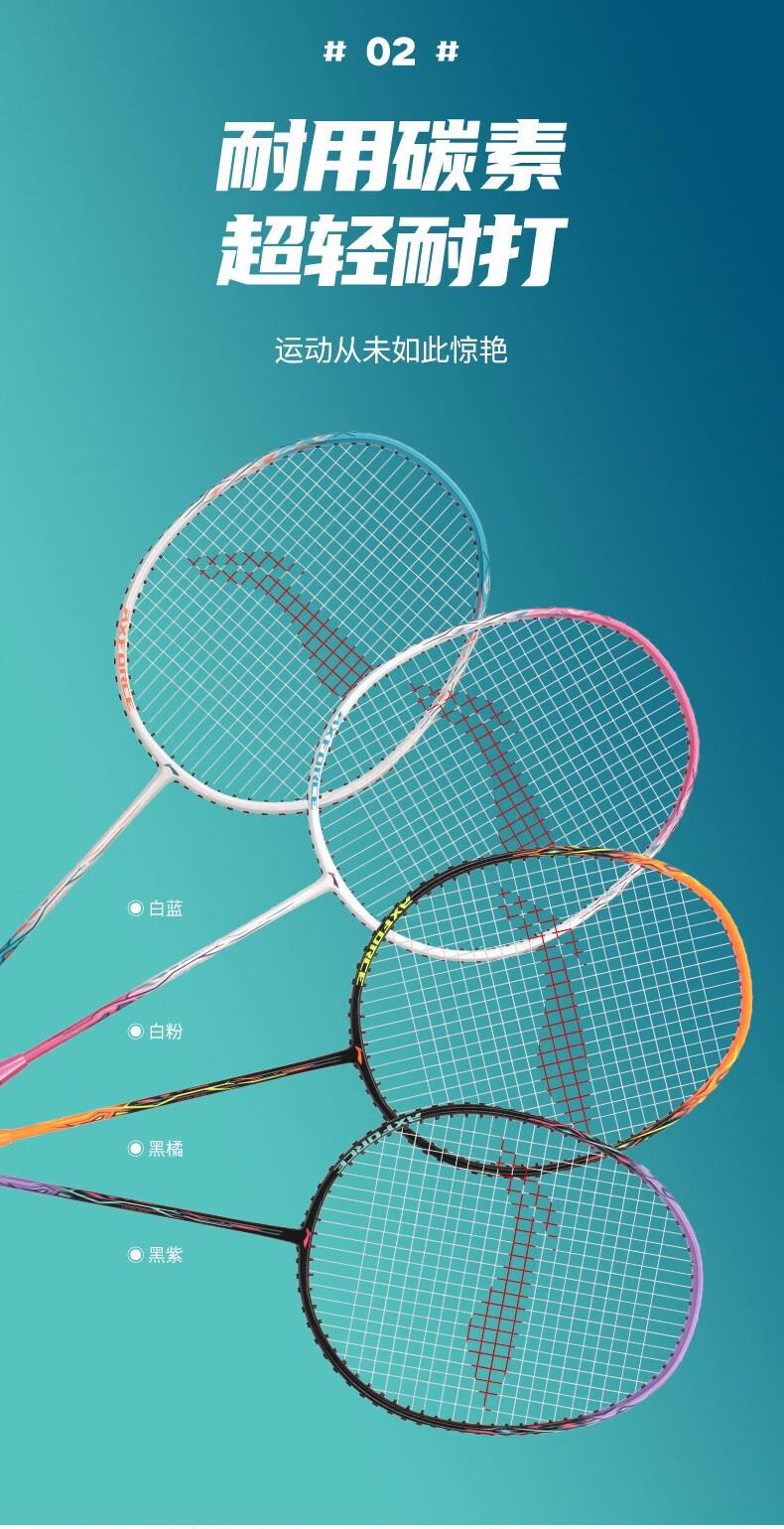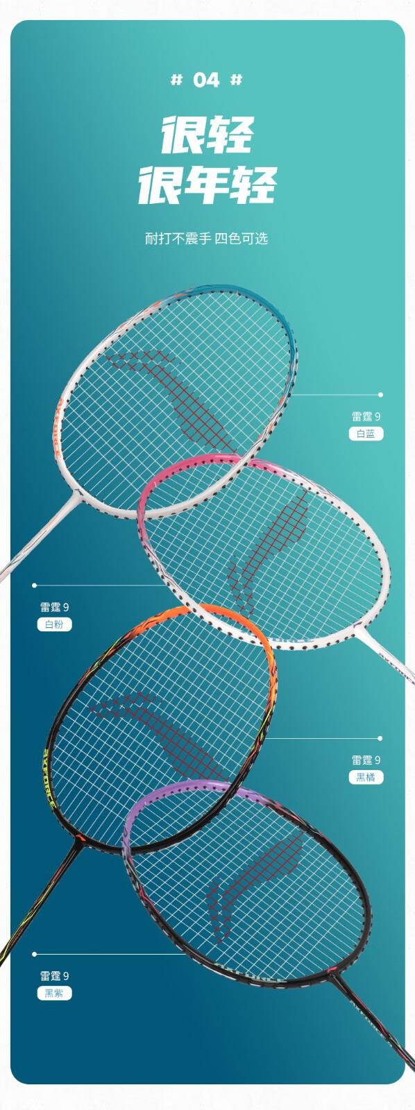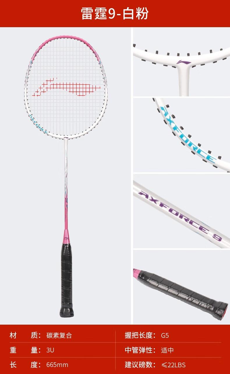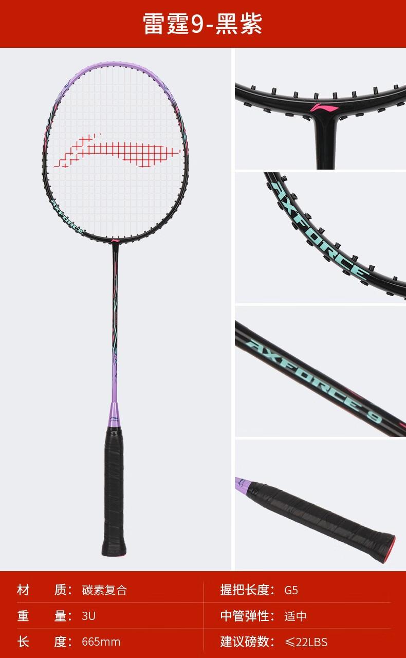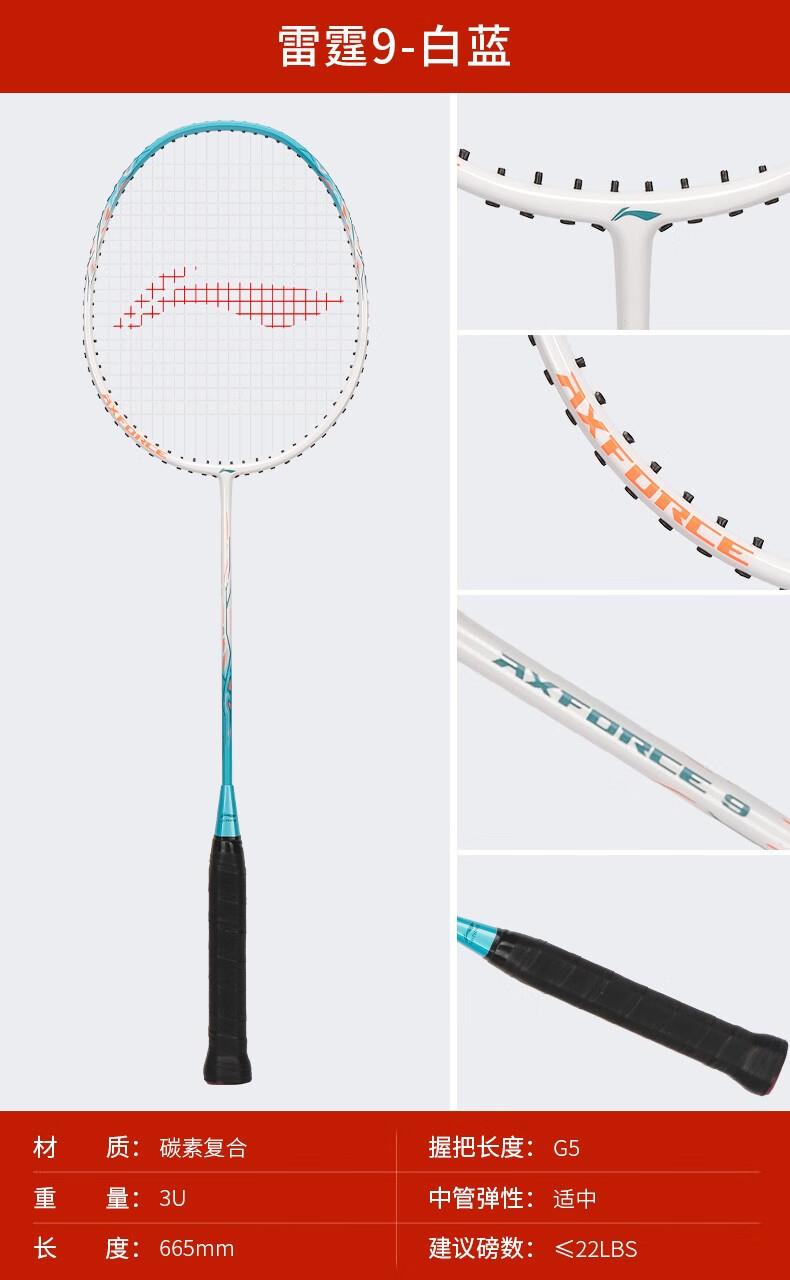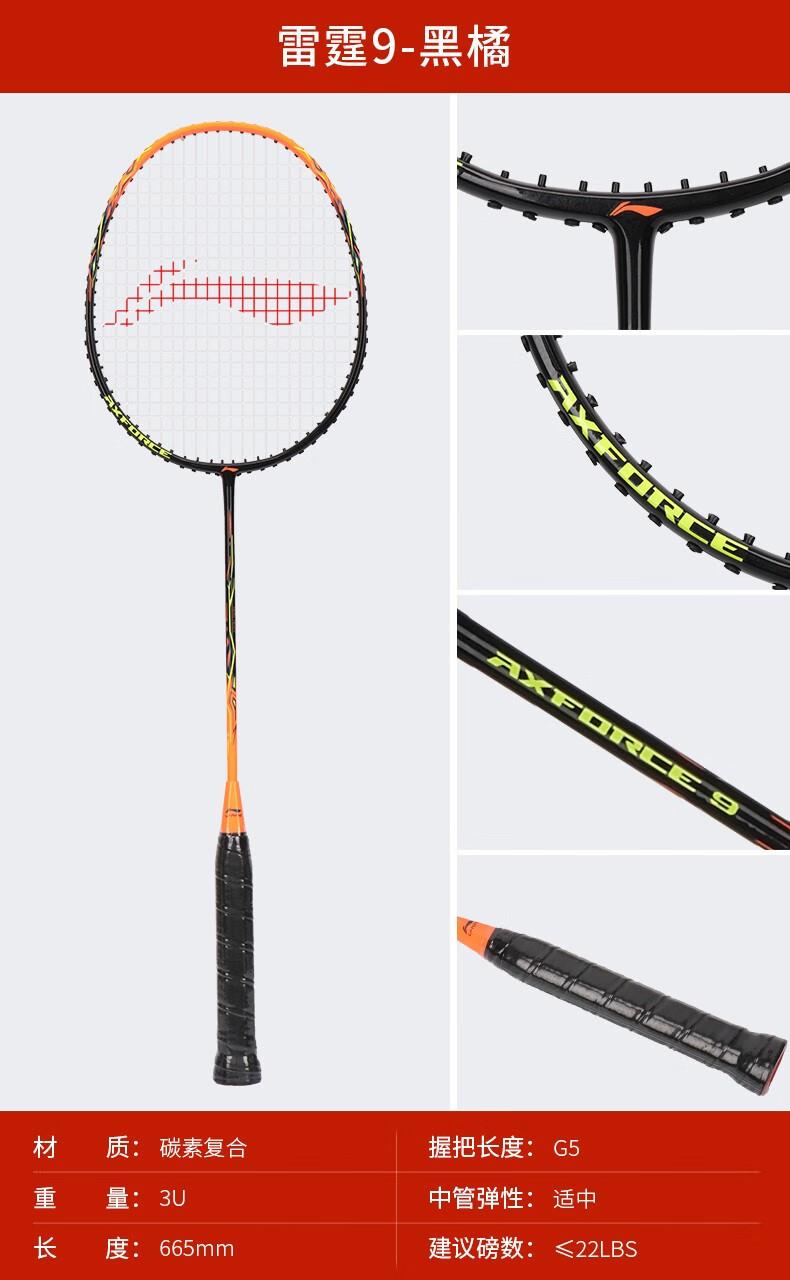 李宁Lining雷霆9羽毛球拍超轻全碳素进攻型单拍初学训练拍