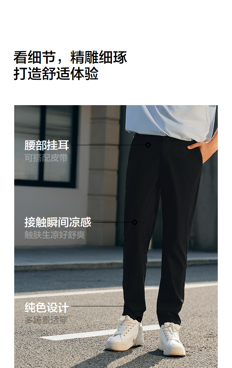 舒服裤|森马休闲裤男商务通勤风小脚裤凉感夏季纯色百搭长裤简约