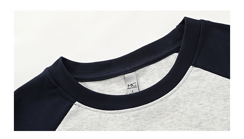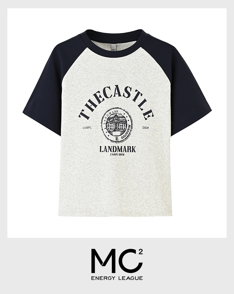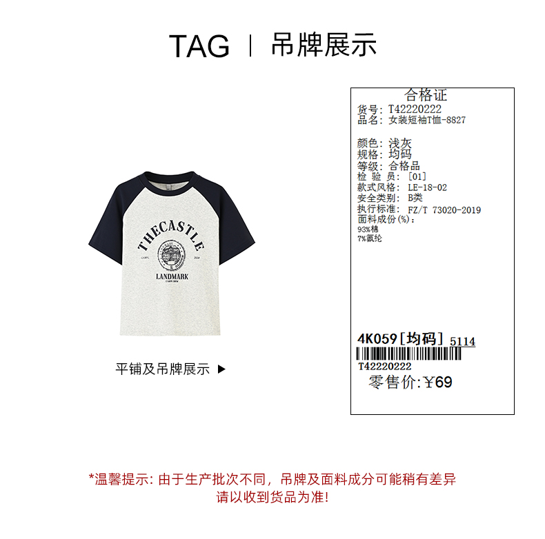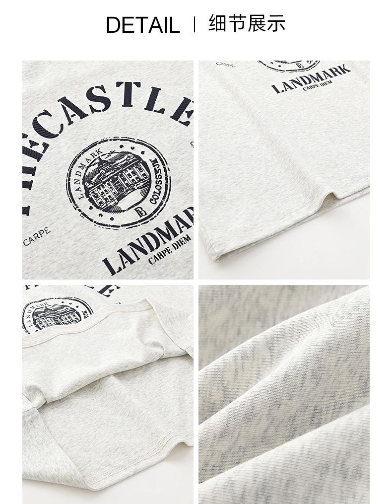 女装圆领袖子拼色圆形复古印花T恤-8827T4222022