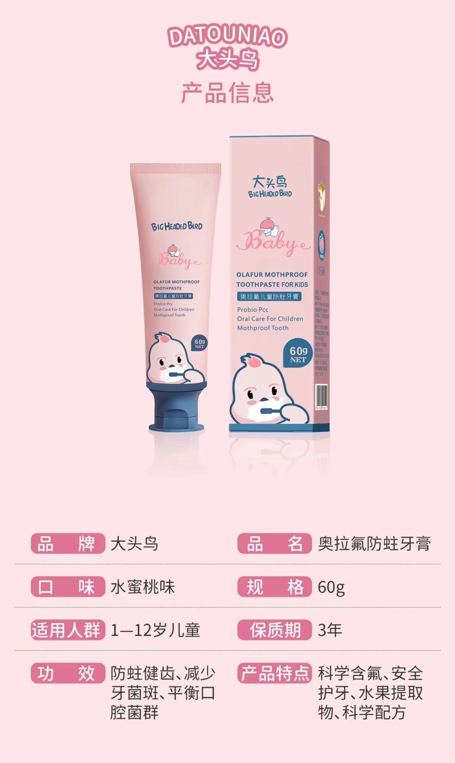 【爆款超低价预售 急单慎拍】德国进口奥拉氟儿童牙膏防蛀龋齿可吞咽1-12岁婴幼儿童含氟去口臭