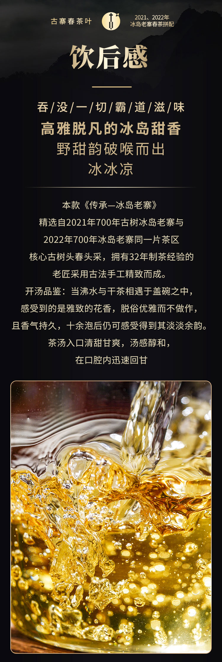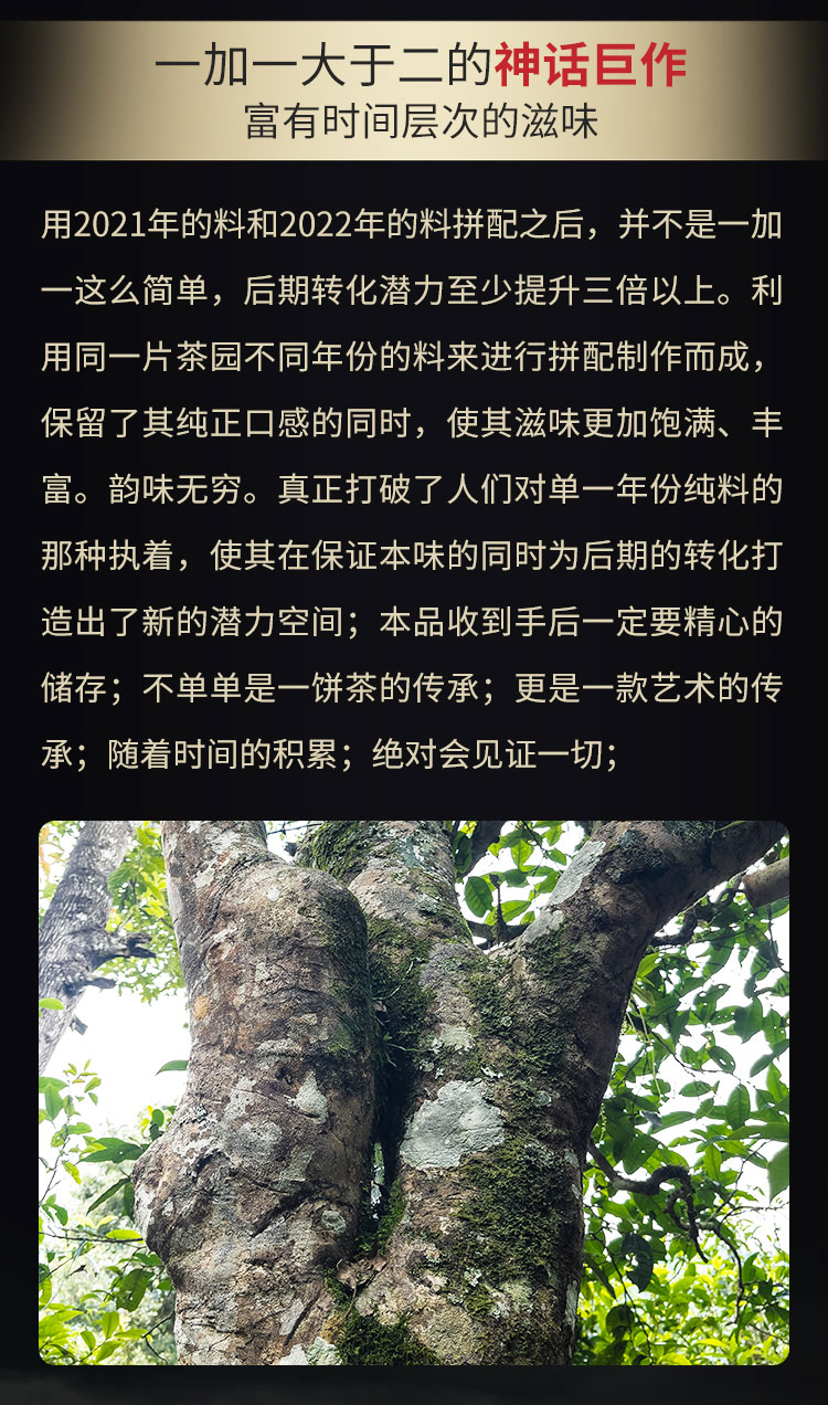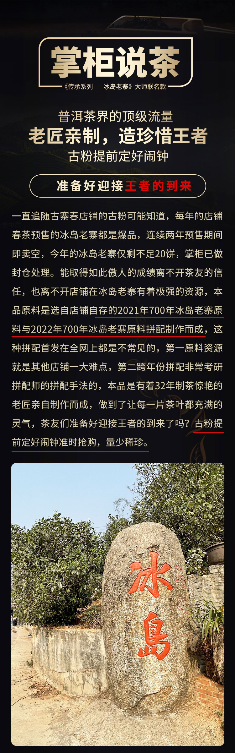 【冰岛老寨】书法大师邹方臣题字,2021年与2022年跨两年冰岛老寨拼配,一杯横跨两年,357克/饼