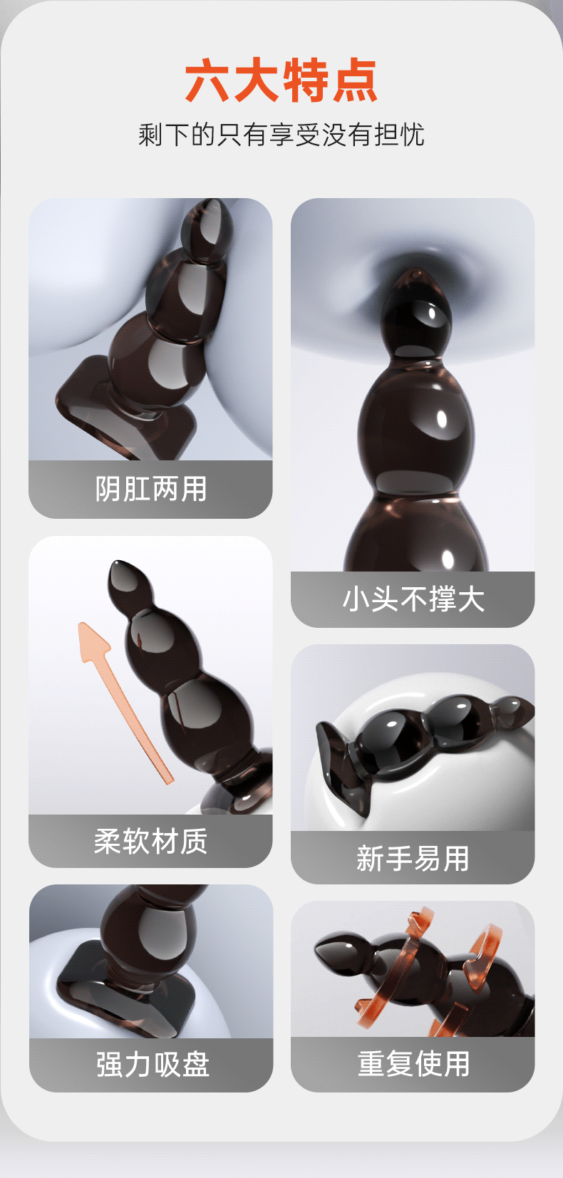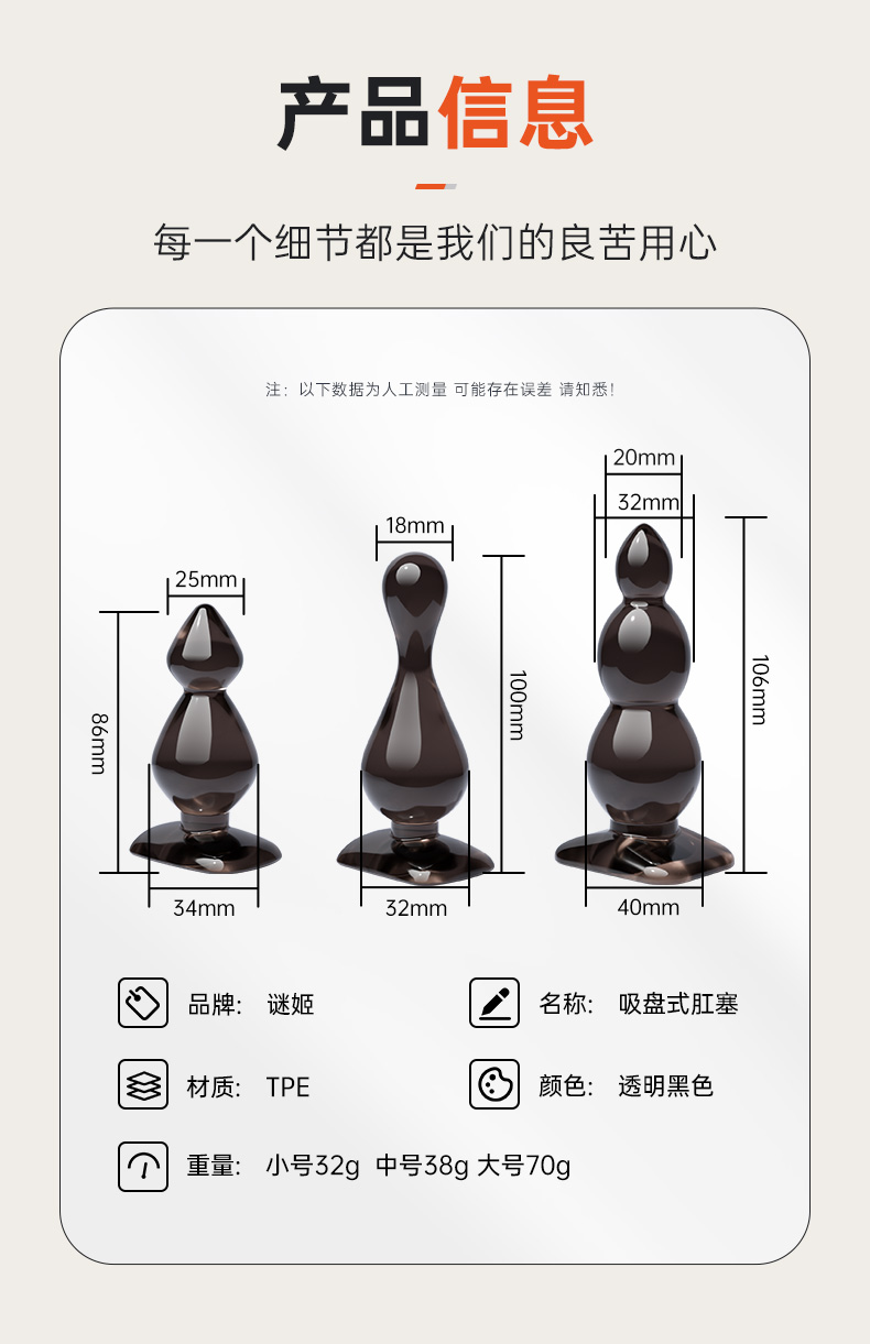 谜姬 吸盘式拉珠后庭肛塞SM 后庭扩肛 男女通用新手小号后庭自慰器柔软弯曲外出佩戴情趣玩具便携成人性用品