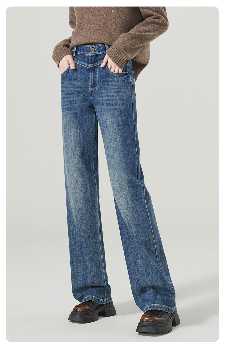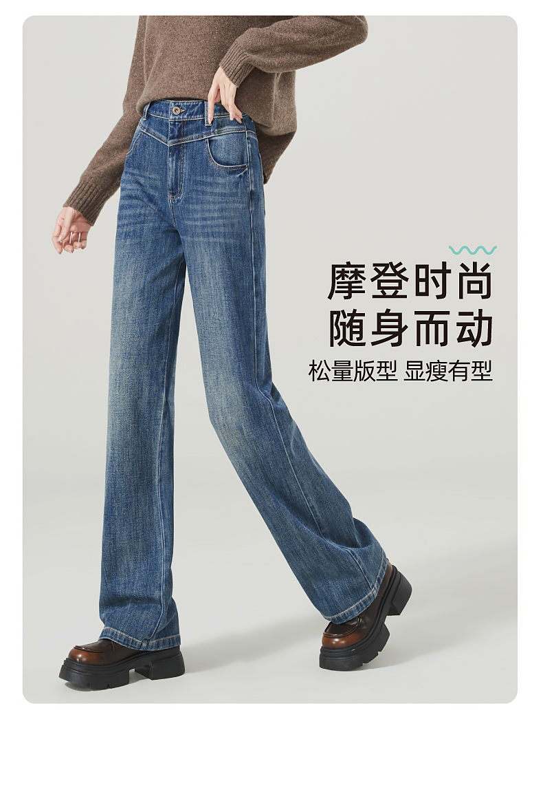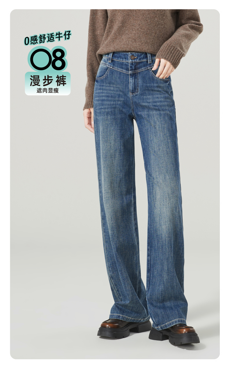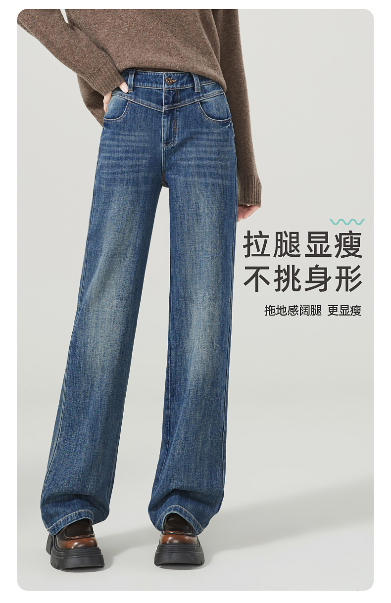 【超值!舒适漫步裤】逸阳宽松阔腿弹力显瘦牛仔直筒裤子1358