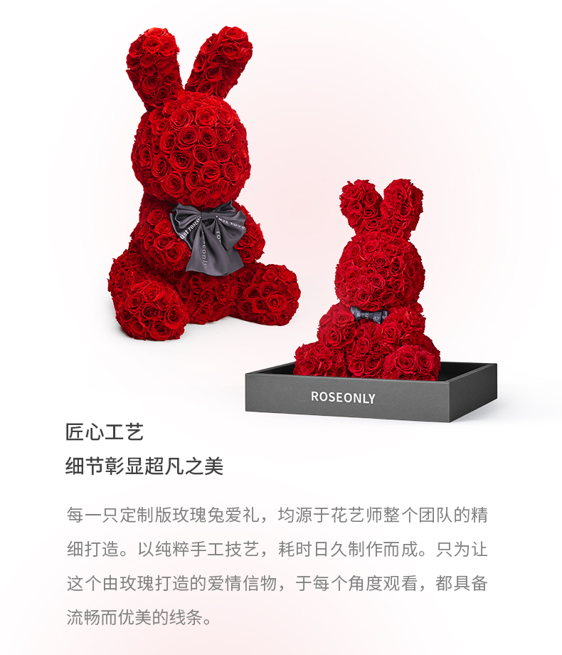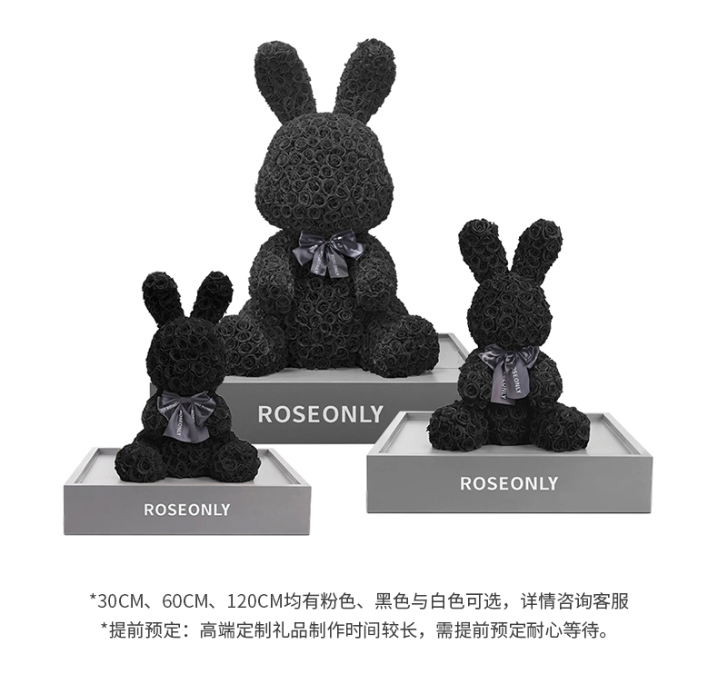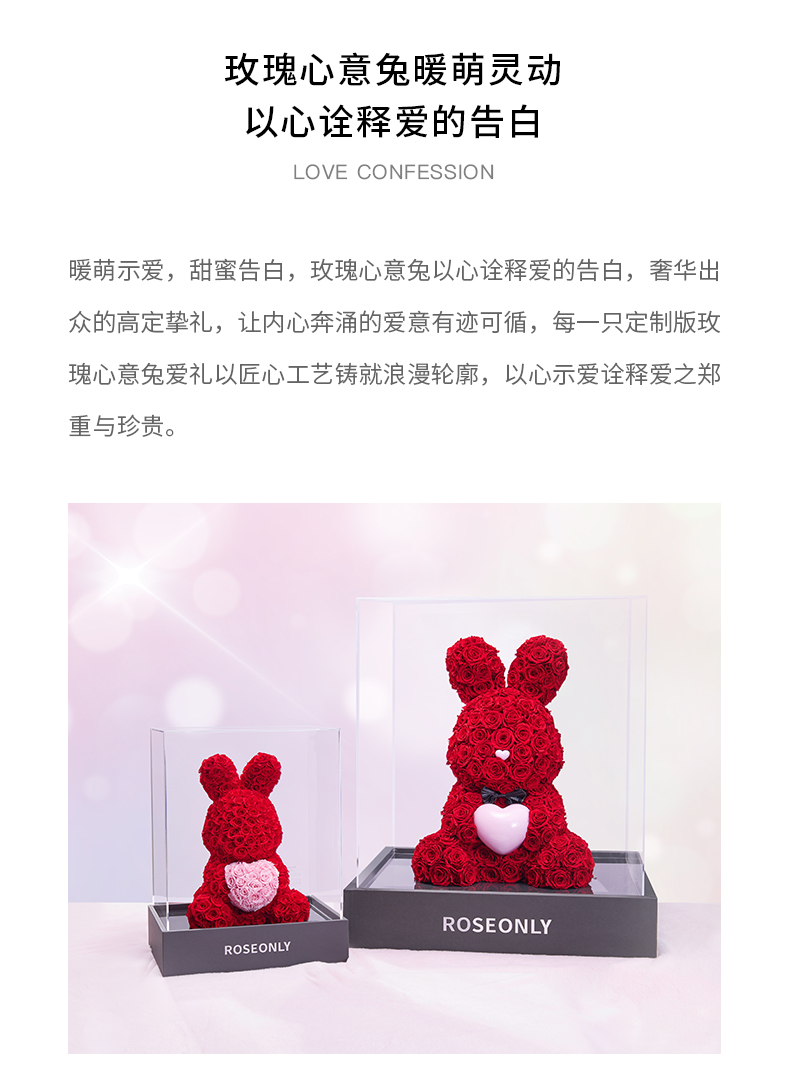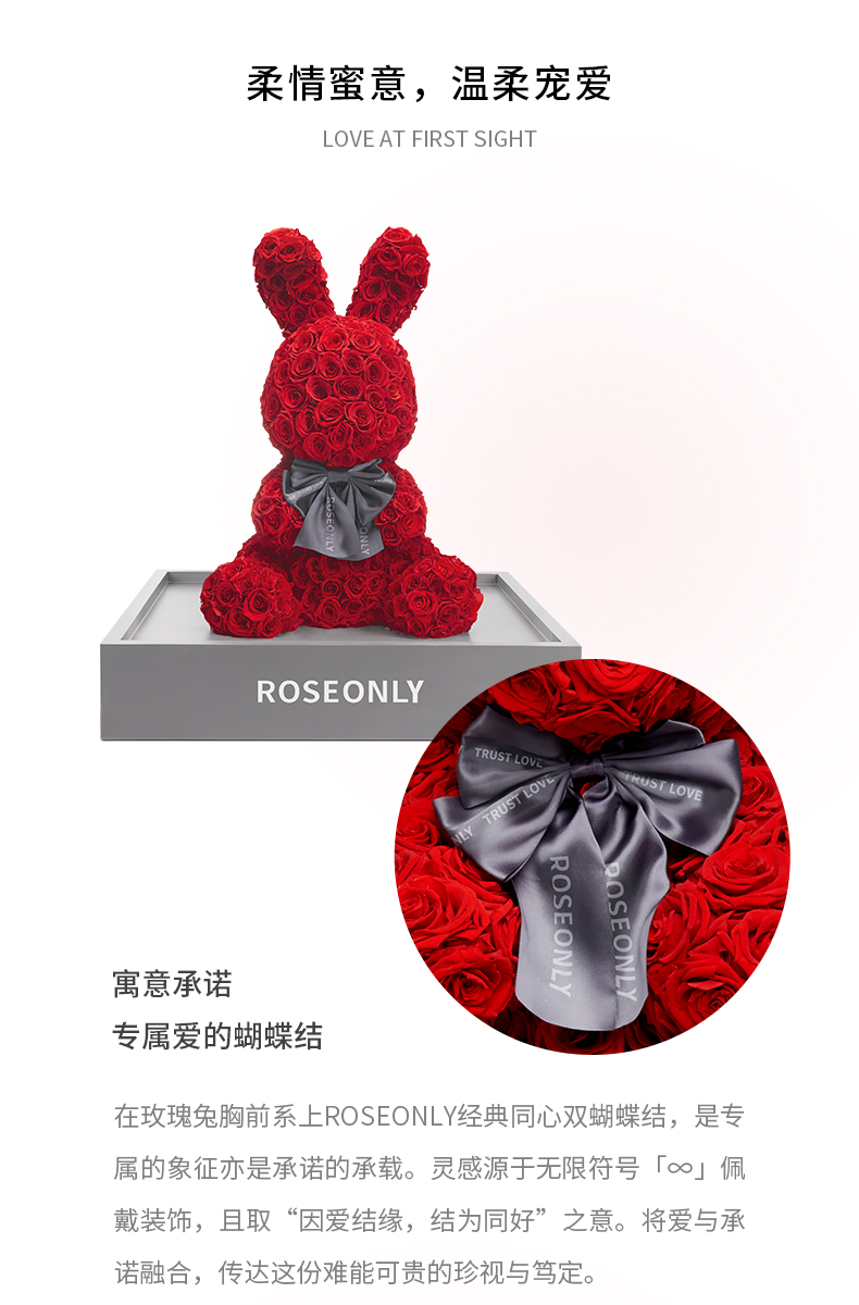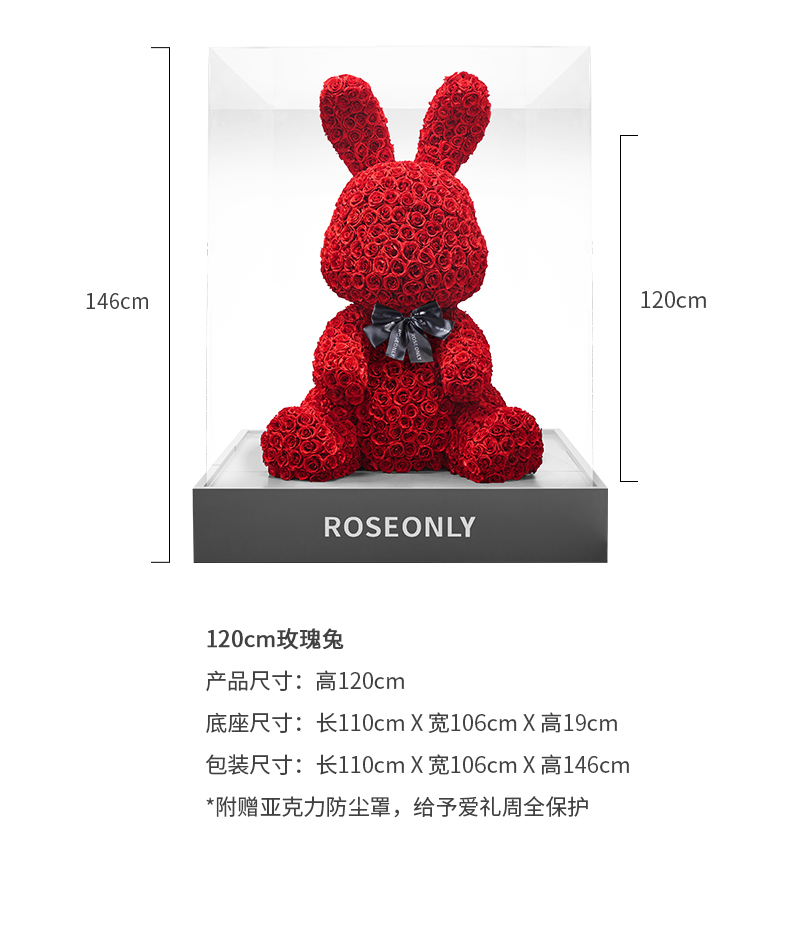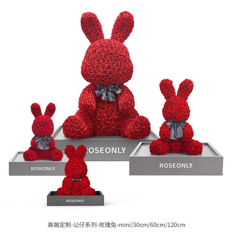 【告白神器】ROSEONLY诺誓 高端定制 永生玫瑰 玫瑰兔公仔 定制版 玫瑰兔 20cm 30cm 60cm 120cm 红色 白色 粉色 送爱人女友礼物