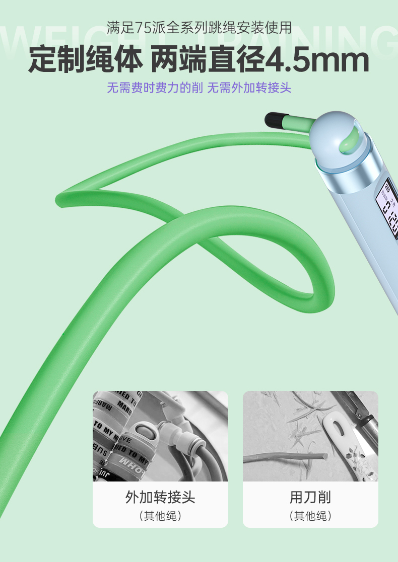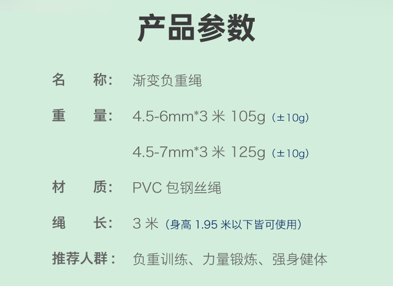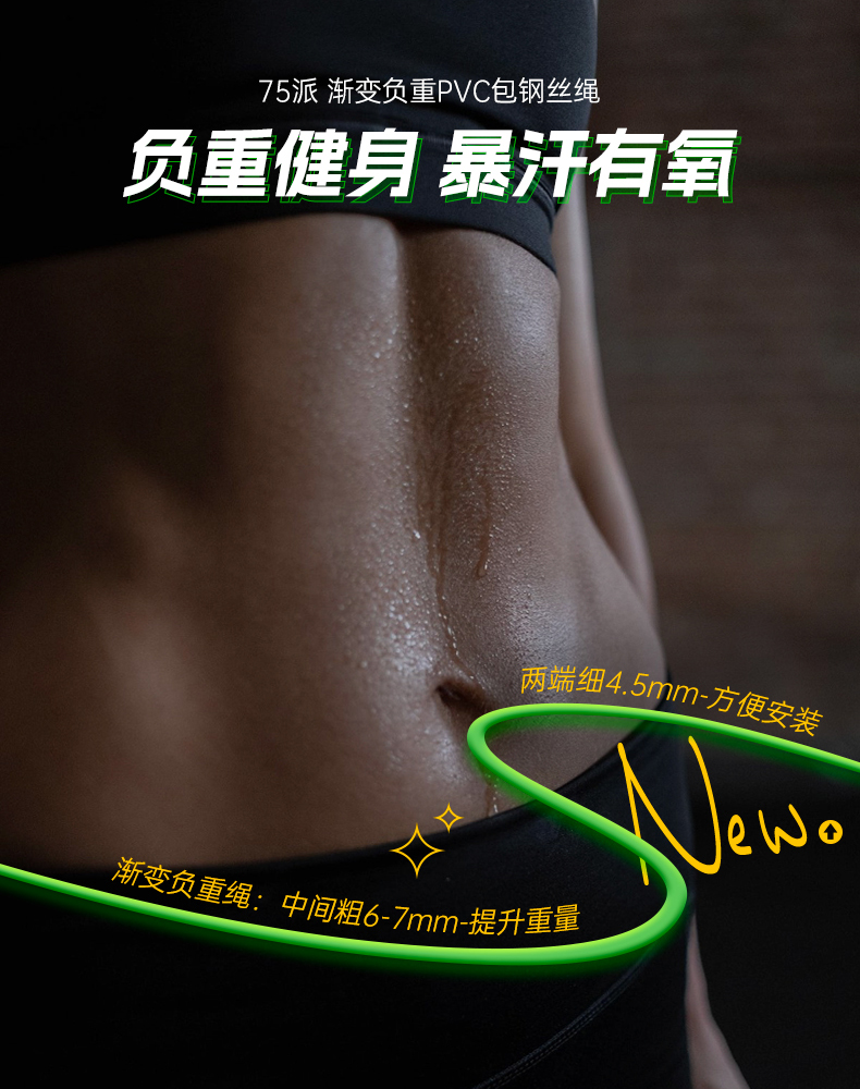 75派新品渐变负重钢丝绳支持75派全系列跳绳手柄直径4.5~7mm重量125克