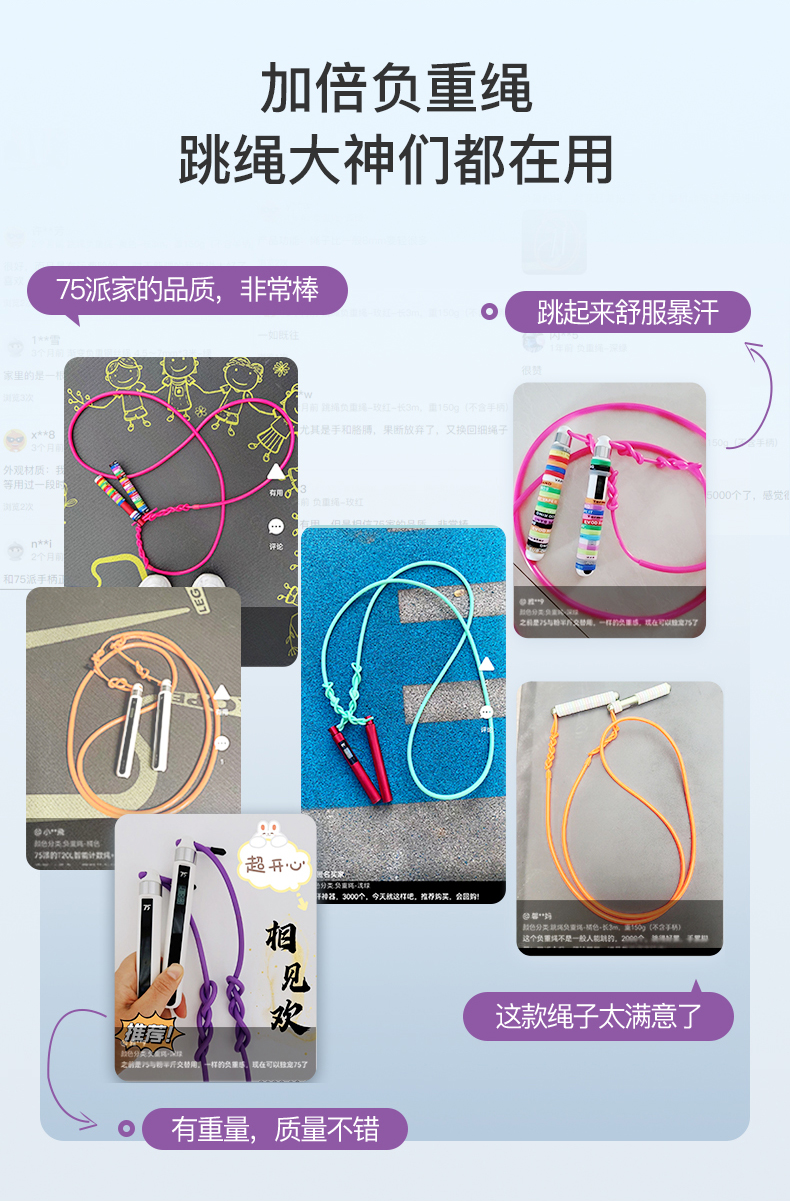 75派新品渐变负重钢丝绳支持75派全系列跳绳手柄直径4.5~6/7mm重量105/125克