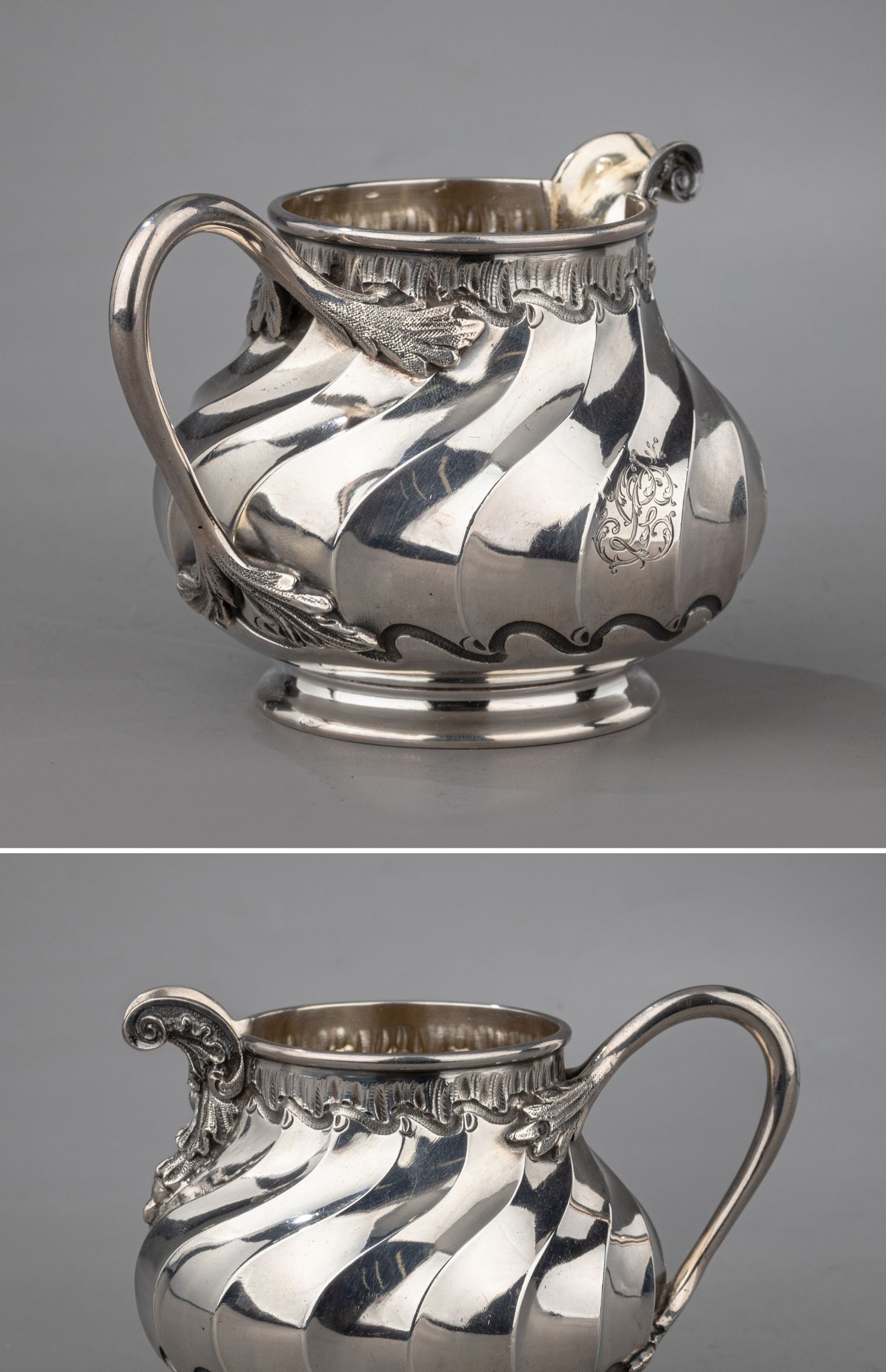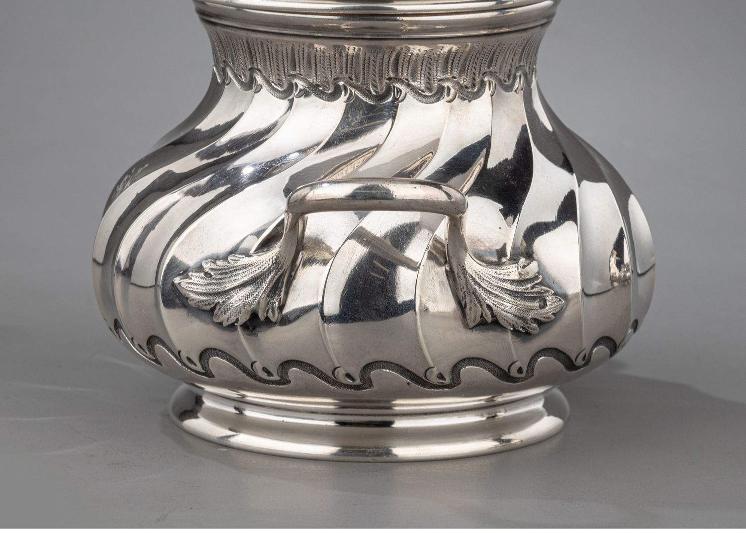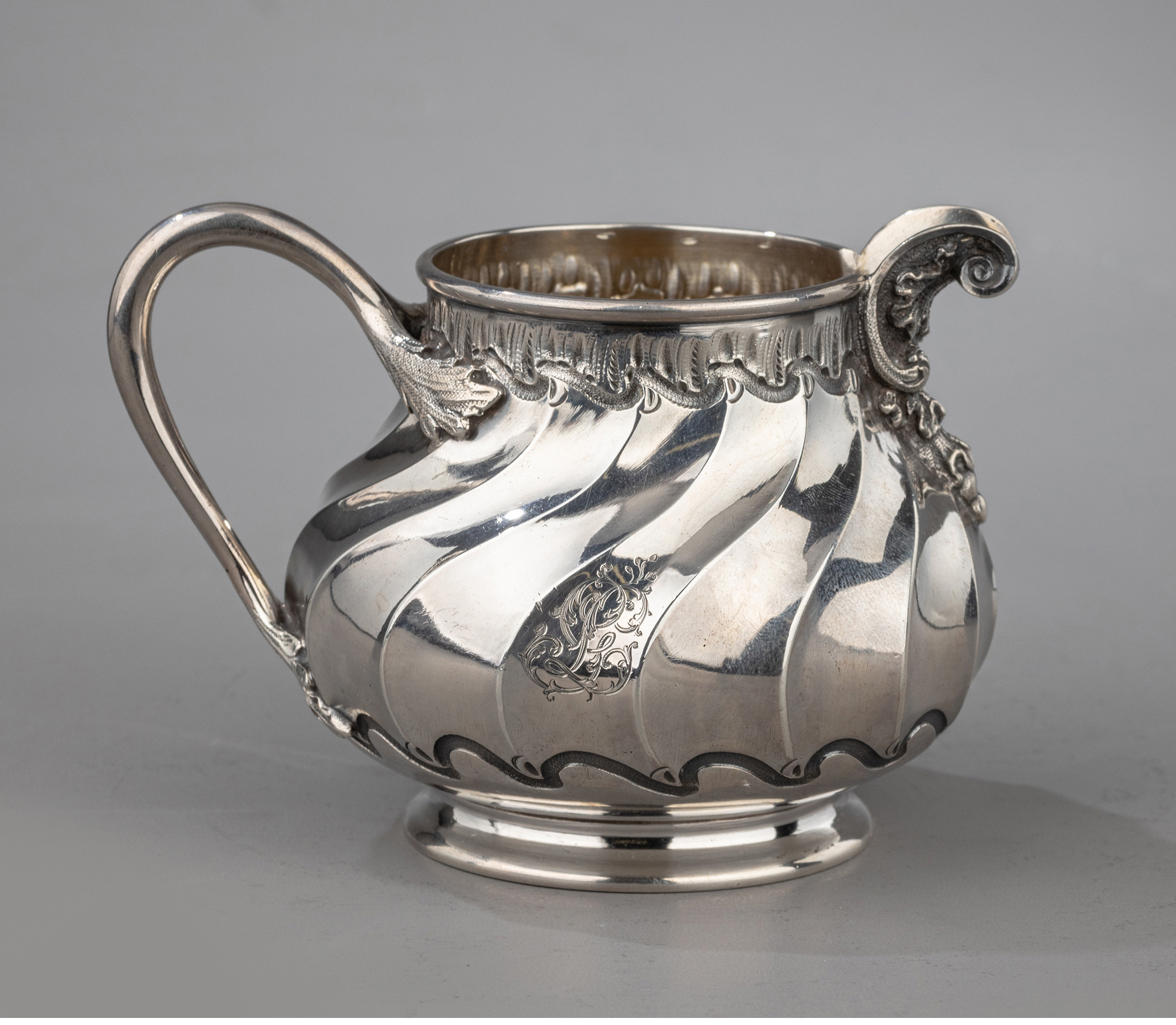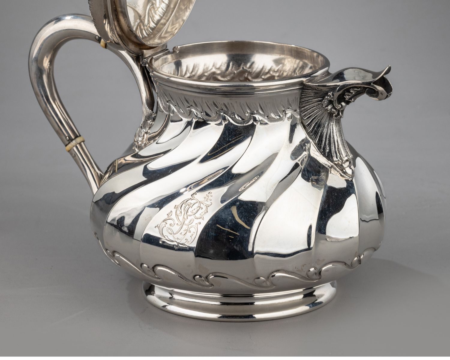 独角鹿西洋古董银匠工坊QUEILLE签名路易十五风纯银精雕茶具4件套