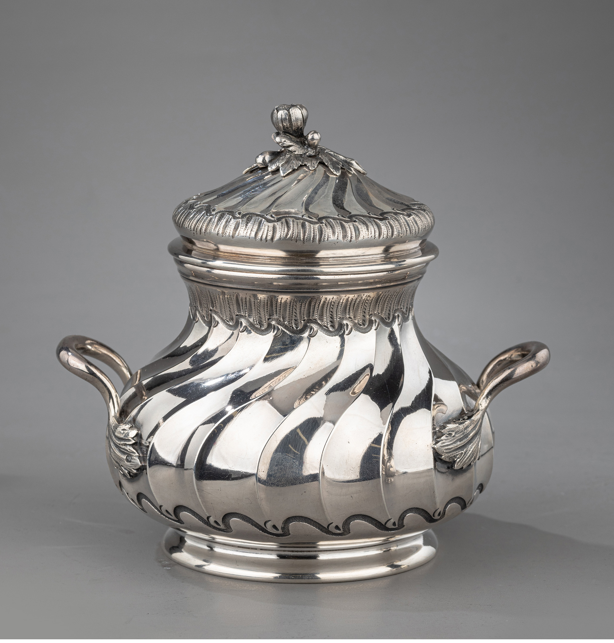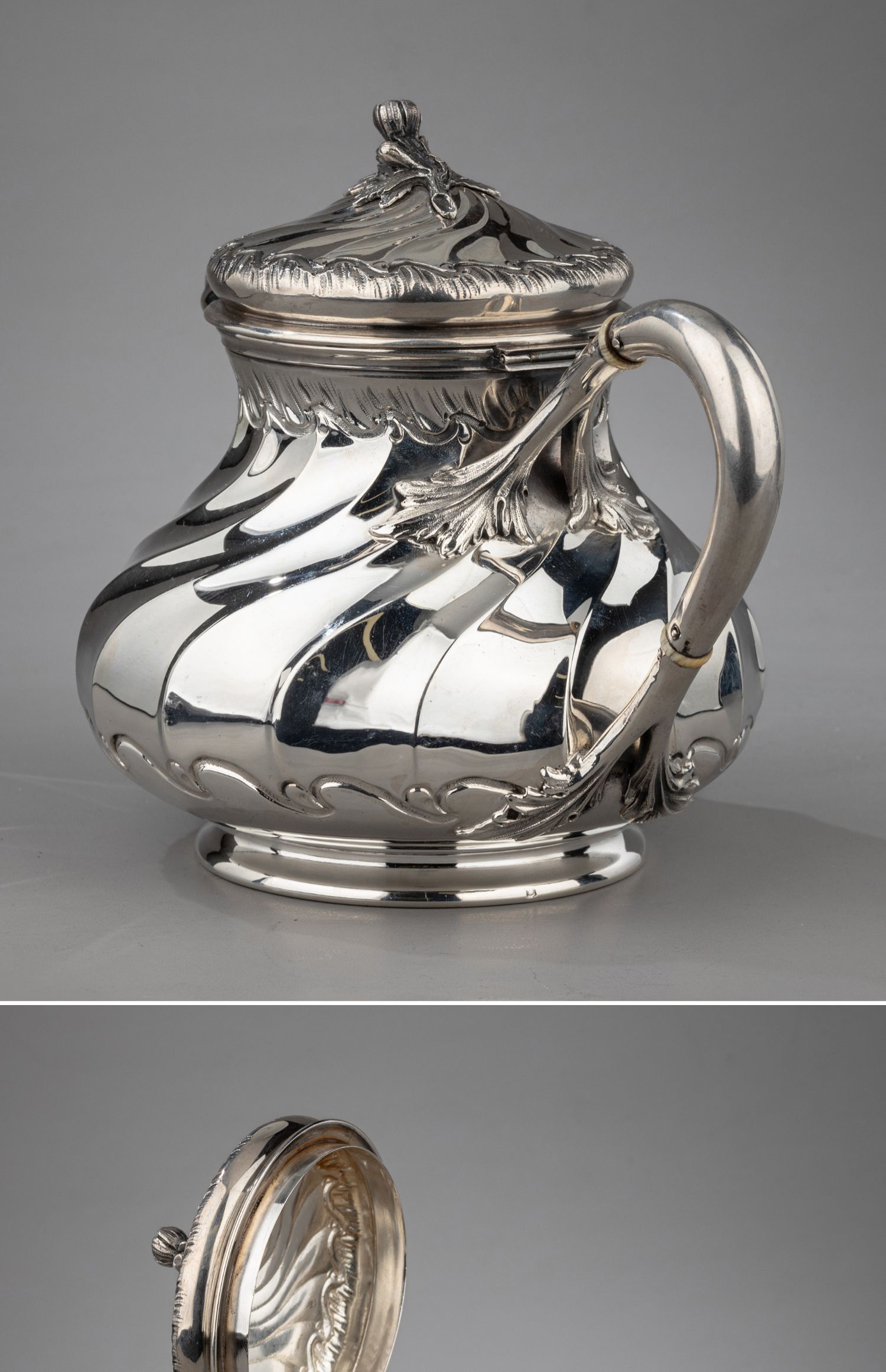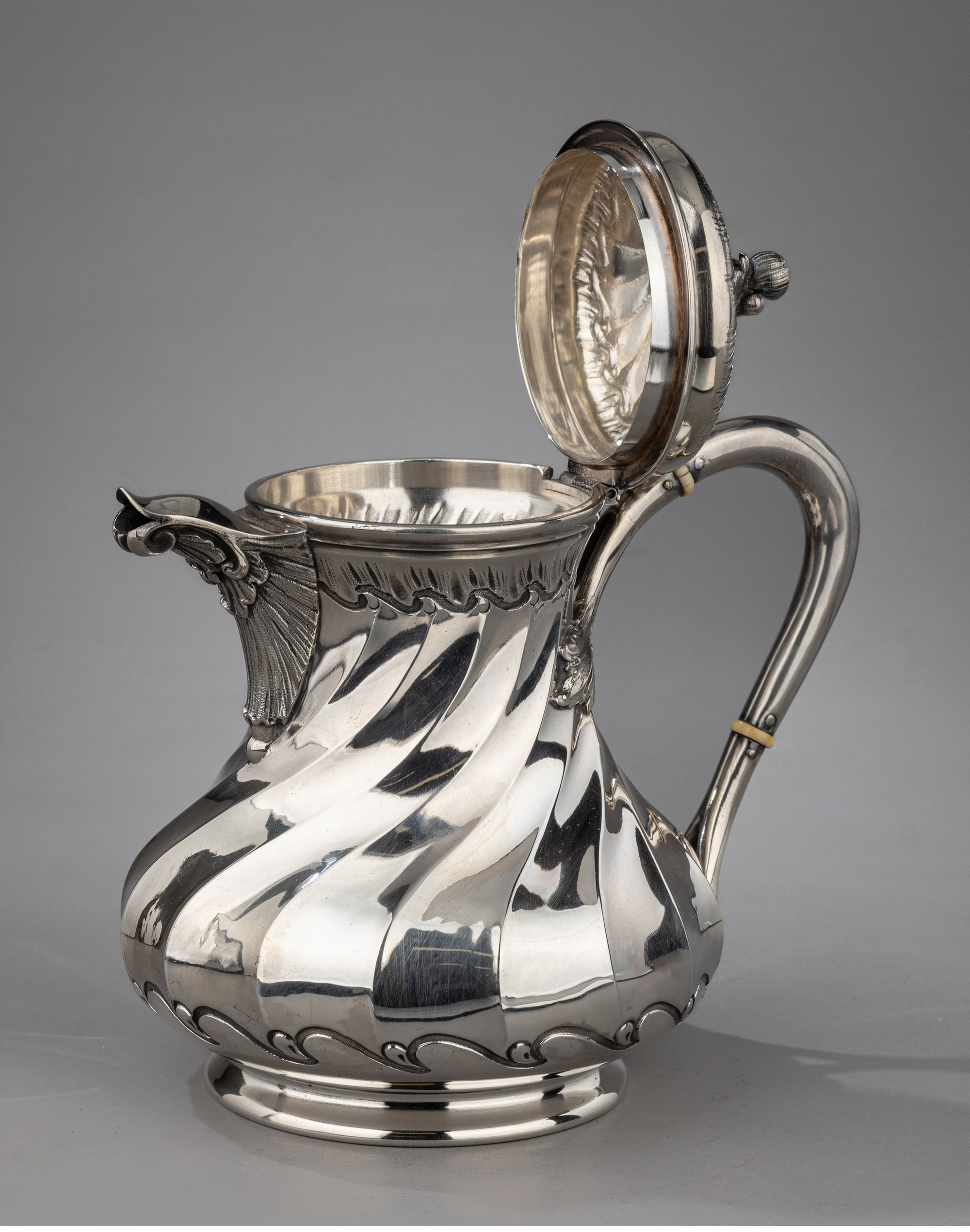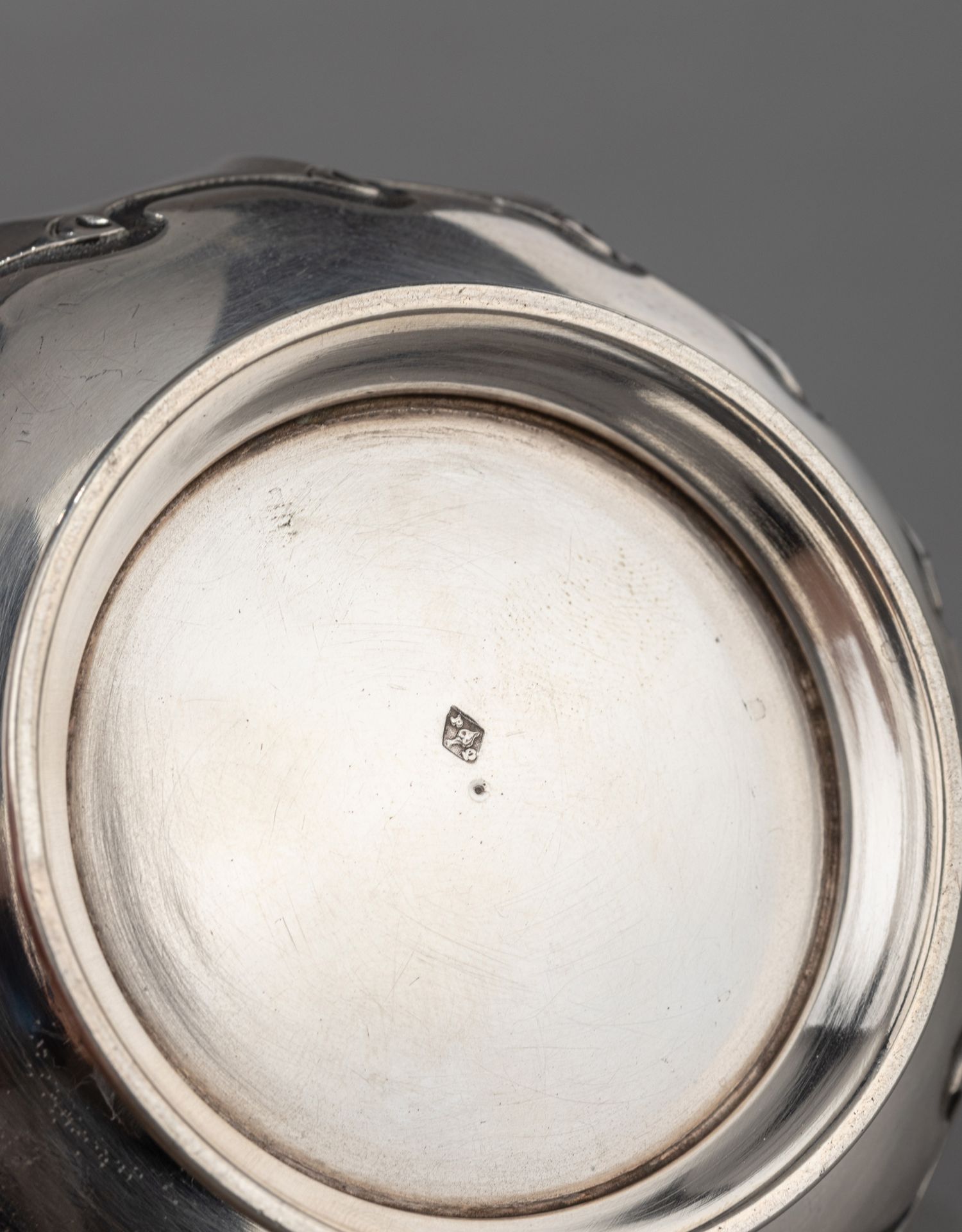 独角鹿西洋古董银匠工坊QUEILLE签名路易十五风纯银精雕茶具4件套